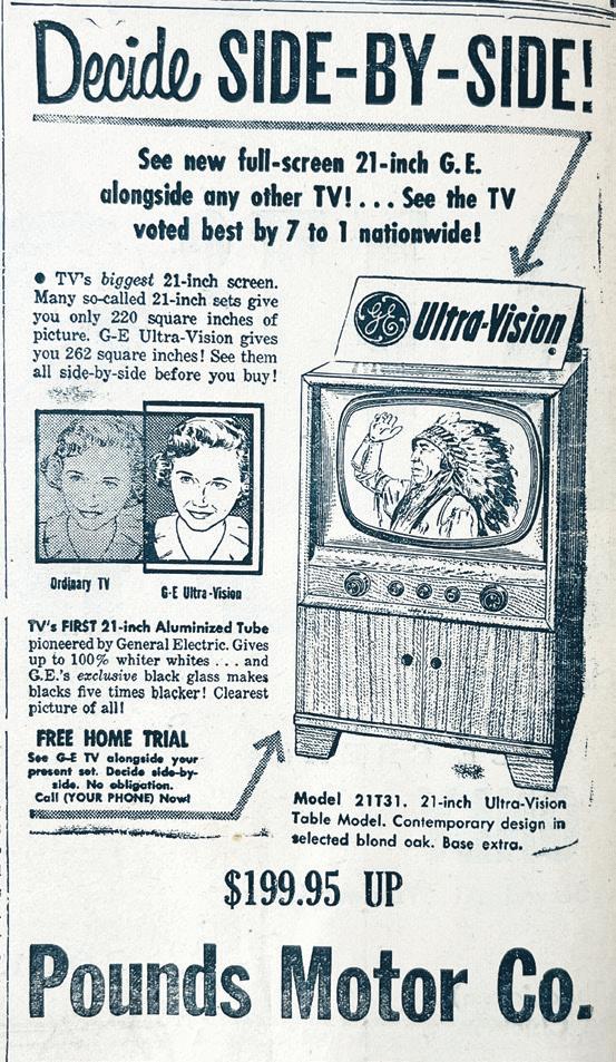 SEPT. 17, 1954 Pounds Motor Company advertised its latest entertainment center in the Winter Garden Times, and folks in West Orange County were being encouraged to go to the shop and check it out. The 21-inch Ultra-Vision table model television featured a contemporary design in blond oak for $199.95; the base cost extra.