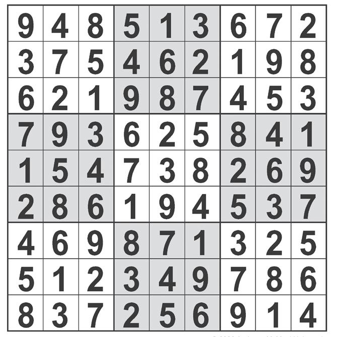 Complete the grid so that every row, column and 3x3 box contains every digit from 1 to 9 inclusively.