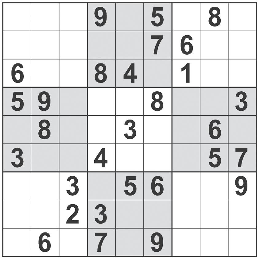 Complete the grid so that every row, column and 3x3 box contains every digit from 1 to 9 inclusively.