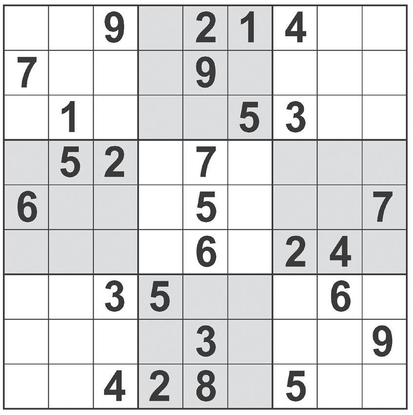 Complete the grid so that every row, column and 3x3 box contains every digit from 1 to 9 inclusively.