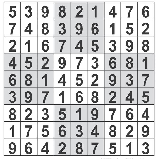 ©2023 Andrews McMeel Syndicate crossword ©2023 Universal Uclick ACROSS 1 Ally played by Calista Flockhart 7 “I can’t take this anymore!” 11 Savage X Fenty purchase 14 Title for Branagh or Caine 17 “La Cerveza Mas Fina” beers 19 Princess sporting “cinnamon buns” 20 Hankering 21 Undercover garb? 22 Property co-owners 24 Terrible twos outbursts 26 Auto pioneer Ransom 27 Academic acronym 28 Deet 30 Hall & ___ 31 Like Teddy Roosevelt’s stick 32 Professional xers 36 Slow-cooked meal 38 Not at work (Abbr.) 39 Secluded valley 40 Word that forces some smiles 41 “Who knew?” 43 It’s often in ated 44 Gold sh in “Pinocchio” 46 Deal-busting grp. 47 Engaging in youthful ings 55 Senior’s elaborate invite 56 Big name in vacuums 57 Numbered musical creation 61 Be under the weather 62 Like an unkempt hearth 63 Oscar-winner Laura 65 Just plain silly 66 Gun the engine 67 Go headlong after one’s dreams 72 LG alternative 73 Move furtively 75 Winery containers 76 Like the “American Idol” logo 77 Cancun sun 78 Crafter’s website 79 Caped sidekick 82 Double-dealing 84 Where to learn life lessons 88 Commander in the White House, for one 91 Bale-ful place? 92 MSN alternative 93 Laudatory poem 94 Like some cheap wine 96 Garden store supply 98 Vegas opener? 100 “Not true!” 104 Air Force Academy locale 108 You can’t make one alone 109 Lopez of Latin pop 110 Twitter screed 111 Everglades wader 113 Louvre’s “___ Lisa” 114 Waiting-in-line talk 116 Comfy leggings ... and a hint to the circled letters 120 Creepy stare 121 “Alas,” in Berlin 122 Turquoise cousin 123 “Get the job done!” 124 Before, before 125 Def of hip-hop 126 Some track gures 127 Barista’s creations DOWN 1 Low-paying positions, in slang 2 “Calm down!” 3 Bank connection? 4 A long time 5 Crumb-toter 6 Rower’s muscles, brie y 7 Budget competitor 8 Kylo of “Star Wars” 9 “Scram!” 10 Red tape, for example 11 Data storage units 12 Get in touch with 13 Cleeves behind “Vera” and “Shetland” 14 Did some browning 15 Involve fully 16 Primary location for some Adelie penguins 18 Sandbox scrap 21 Shipping container 23 Infamous Roman ddler 25 High on the Scoville scale, for many 29 Crossword tool for the con dent 33 Aussie footwear brand 34 Setback 35 Most of the globe 37 Passing fancy 38 “Did I do that?” 42 Empty one’s baggage, emotionally or otherwise 43 Sushi selection 44 Concert stack 45 Head of Eton 47 Widely scattered 48 “Murder on the ___ Express” 49 “The Jungle Book” pack 50 Labor watchdog org. 51 Verbal dissents 52 Elba of “Luther” 53 “Coal Miner’s Daughter” singer Loretta 54 Archie, to Prince Harry 58 Interstellar distance 59 Open up a cab? 60 They rival Sertas 63 It’ll clean your pipes 64 Finish a course 65 Kitchen feature 68 Sermon topic 69 See 107-Down 70 Early Roman poet 71 Knuckleheads 74 Regretful cries 79 “Mary Tyler Moore” spino 80 Gut punch reaction 81 Web nuisance 82 “Cooking With ___” (“Today” show segment) 83 December standard 85 Vicar or chaplain 86 Carnival cousin 87 Colorful Hindu festival 88 Easily shaped or in uenced 89 Coming from Amazon 90 Israeli sea 95 One who’s done for 96 Phishing target, often 97 Decides one will 98 Letters of Pride 99 Avia rival 101 Defensive denial 102 Broadway’s Mame 103 Celebrity comic tributes 105 Harry’s Hogwarts nemesis 106 Hand-on-Bible declarations 107 With 69-Down, a Nobelist in physics 112 Silverstein of kid lit 113 Bomer of “Fellow Travelers” 115 Pineapple’s pizza partner 117 TV’s Lasso 118 “Awesome!” 119 Food- ght missile