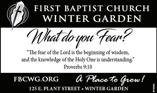 OrangeObserver.com 10B OBSERVER | THURSDAY, JUNE 15, 2023 11953 W. COLONIAL DR., OCOEE, FL WWW.LMSOCOEE.COM • 407-787-9595 OPEN MON. - SAT. 9:00 AM - 5:00 PM SIDE BY SIDE ATV MOTORCYCLES ELECTRIC VEHICLES MOWERS TRACTORS HEAVY EQUIPMENT TRAILERS WE TAKE TRADES • FREE DELIVERY FINANCING PROGRAMS VISIT OUR WEBSITE FOR SPECIAL PROMOTIONS. FREE SPEAKER ($999 value) Zero Turn Bad Purchase a side by side or ATV and get a $250 Love gift card to use in store on hand tools, parts and accessories. ALSO CARRYING: FATHER’S DAY IS COMING SOON! WANT TO SEE YOUR LISTING HERE? CALL (407) 656-2121 or email AdvertiseNow@orangeobserver.com BAPTIST First Baptist Church Pastor Tim Grosshans 125 E. Plant St, Winter Garden (407) 656-2352 Sundays: 8:30 AM Traditional 9:45 AM Bible Study 11 AM Contemporary Wednesdays: 6 PM Awana EPISCOPAL Church of the Messiah 241 N. Main St., Winter Garden Services: 8, 9:30, & 11 AM, 4 PM (French & Creole), 7 PM www.ChurchoftheMessiah.com METHODIST First United Methodist www.fumcwg.org ANGLICAN ANGLICAN COMMUNITY FELLOWSHIP CHURCH Rector The Rev. Canon Tim Trombitas 1146 East Plant St, Winter Garden SUNDAY SERVICE 10:00 AM Find us at: Theacf.net BAPTIST BEULAH BAPTIST Pastor Casey Butner 671 Beulah Rd, Winter Garden 407-656-3342 | BeulahBaptistWG.org SUNDAY BIBLE STUDY 9:30AM SUNDAY SERVICE 11:00AM WEDNESDAY SERVICE 6:00PM