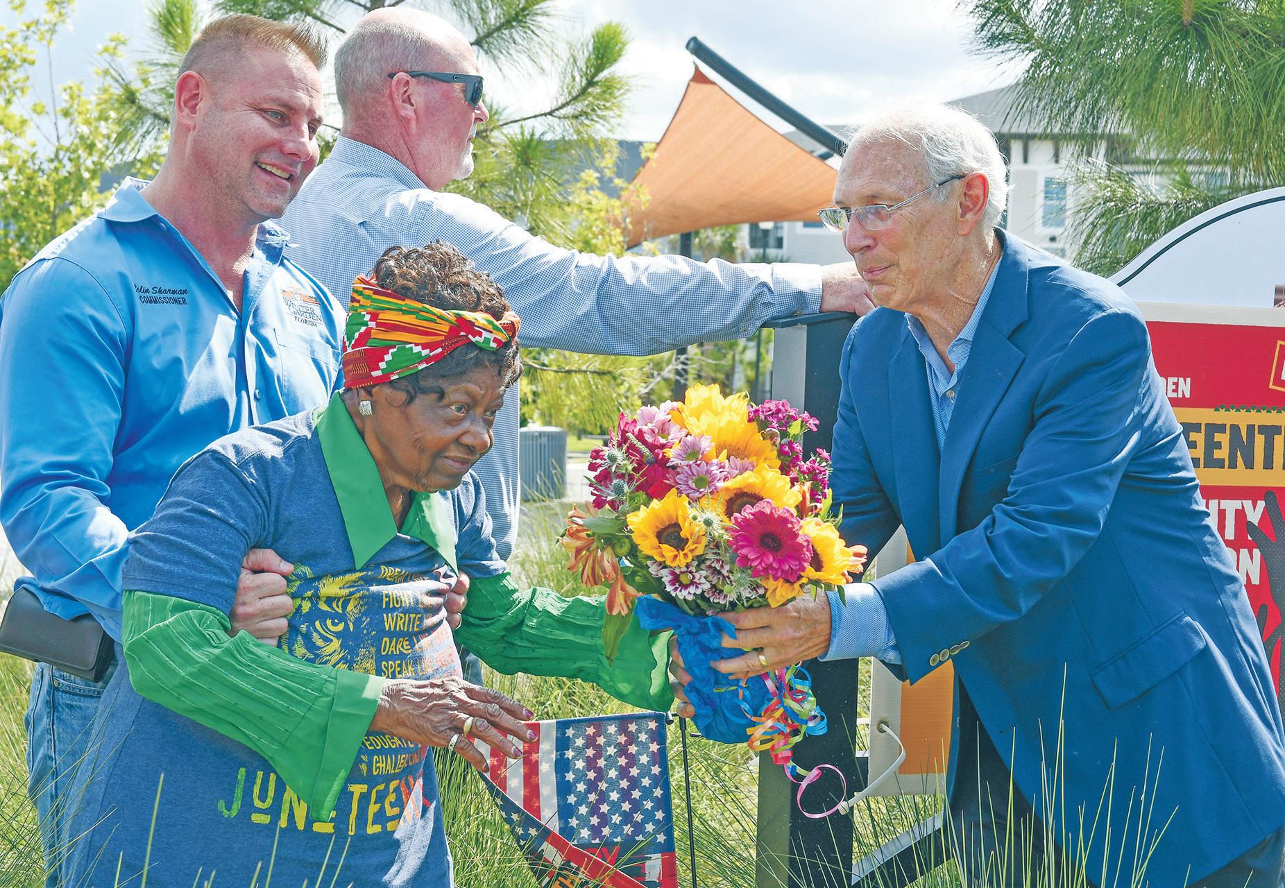 Charlie Mae Wilder, center, was all smiles during the dedication of the park at the Juneteenth community celebration.