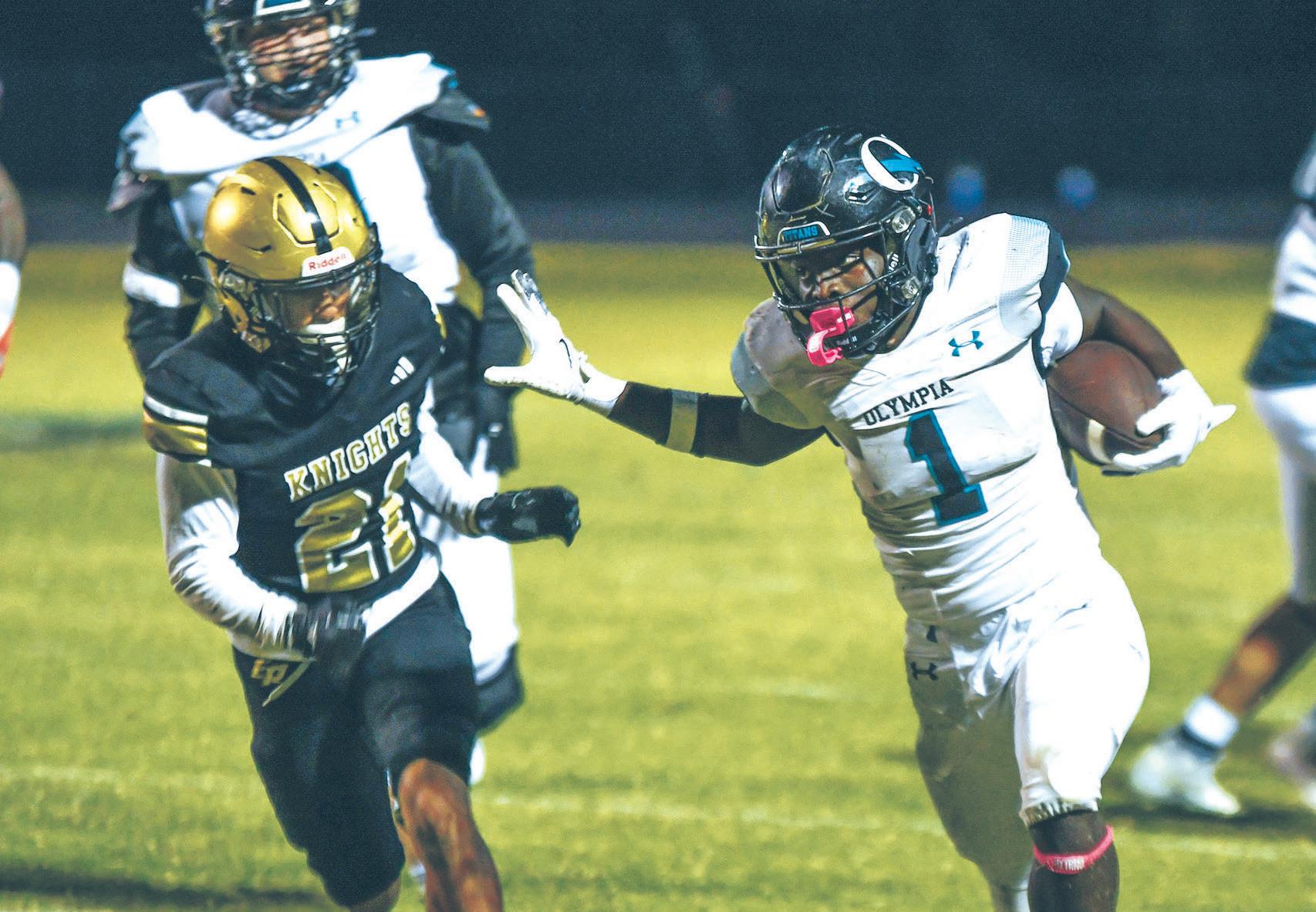 HIGHLIGHTS: The Olympia High Titans moved one game closer to .500 after dismantling the East Ridge Knights for their Homecoming game. On the back of a strong running game and a turnover-inducing defense, Olympia bounced back from a tough start that saw them down 14-7 in the second quarter and put together a dominant 41-7 run from the backend of the first half to the end of the game.