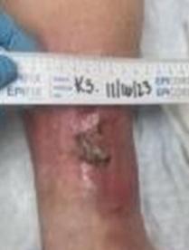 This patient was a 39-year-old female with a 1-year history of a recalcitrant VLU on her left medial malleolus which had been refractory to other advanced modalities.