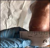 Beryl was seen by the vascular team on 11/11/21, who planned to regularly review her to determine any plans for intervention. By 15/11/21, the wound showed minimal size reduction, measuring 2 cm x 0.75 cm, with light slough (see Figures 3f and 3g). Unfortunately following light slough debridement, some bone was noted in the middle of the wound base. The wound had moderate thick exudate. Further liaison was undertaken to the GP, to request a referral to the orthopaedic team to eliminate osteomyelitis . The pain was described as an occasional “niggle” at approximately 2.5/10 with no complaints of pain during the night.
