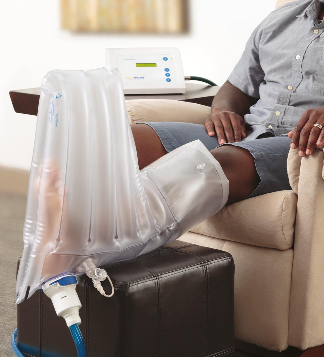 Non-contact, cyclical-compression helps to reduce edema, enhance peripheral vascular circulation and stimulate neovascularization.