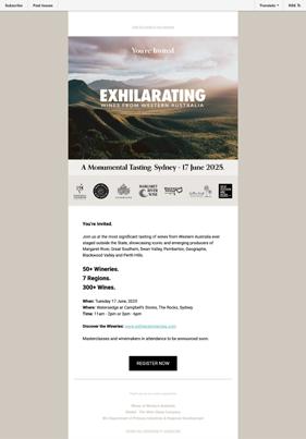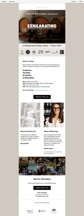 In June 2025, we delivered the most significant trade tasting of Western Australian wines ever staged outside our state. Fifty wineries showcased over 300 wines to the Sydney market, representing all seven of our wine regions. This bold initiative demonstrated our commitment to raising the national profile of WA wines and supporting our producers' market access.