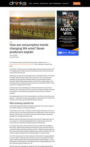 Importantly, this year also brought opportunity. The removal of Chinese tariffs opened new export possibilities, while growing global demand for sustainably produced wines aligned perfectly with Western Australia's strengths and values.