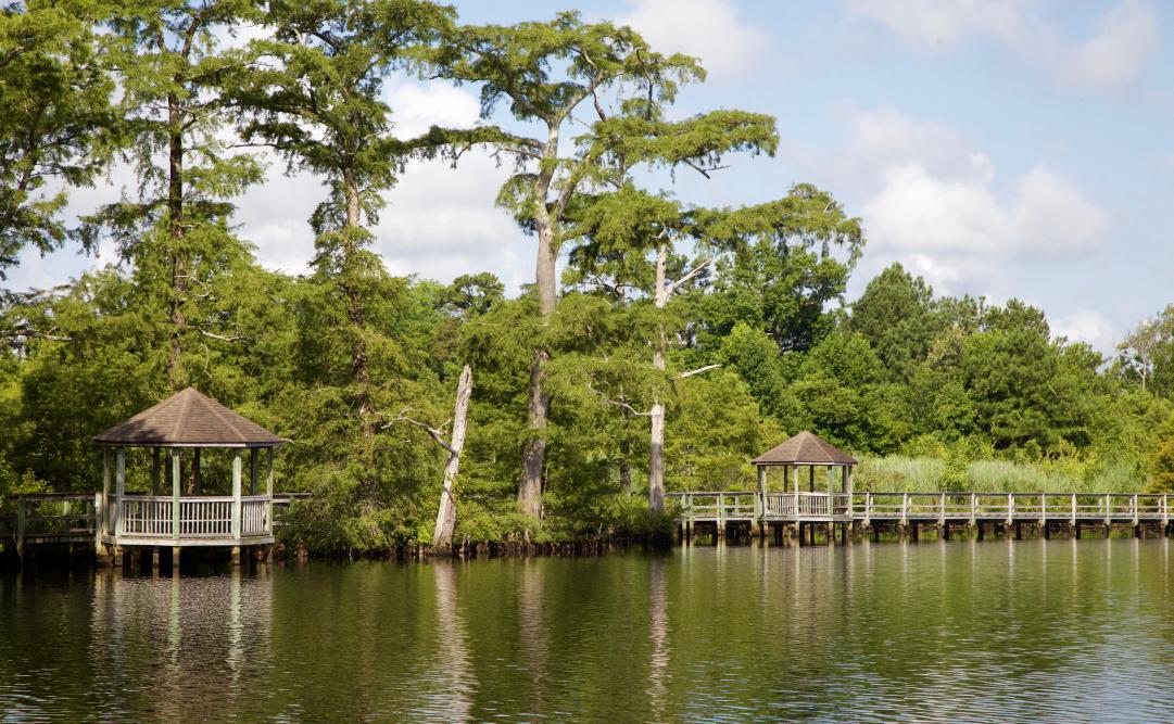 • One of the underleveraged aspects of the campus is the potential view shed from campus to the water. Future campus development must preserve the environmental buffer at the campus and water edge and seek to improve views to the water. An outdoor classroom has been proposed along the edge to activate use and improve visibility to this unique natural resource for the campus and provide additional points of connection to the trail and boardwalk network. The master plan will illustrate connections to the boardwalk that links the campus along the waterfront. This will also be explored in connection with potential redevelopment of the hospital property and joint access by community and college with potential for kayak and canoe launch.