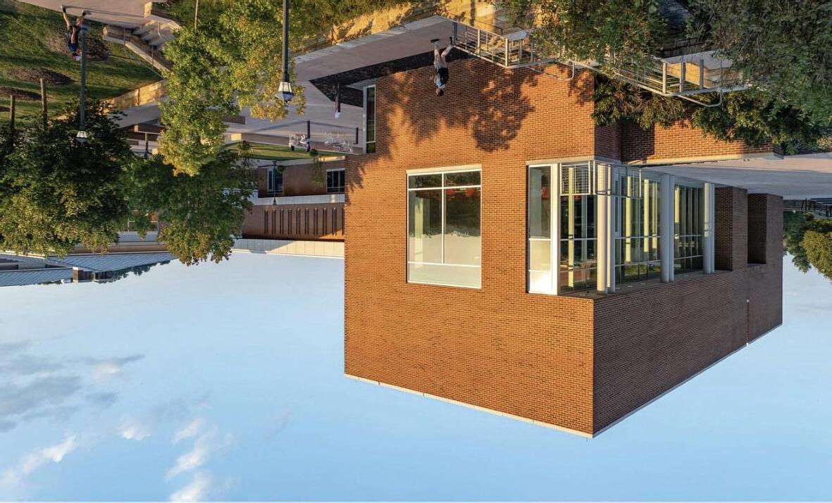 Due to the existing site topography of the campus, there are two levels of entry to the building. Exterior site improvements include an upper-level plaza at the new building entrance, located at the second floor, north side of the 1966 building. The project will demolish and replace existing site walls and concrete site stair. Brick veneer modifications, a new seat bench, and a new exterior plaza paver system will create a clear and welcoming entrance. A second, but equally important building entrance was also added at the first floor, lower-level plaza, located at the northeast corner of the 1966 building at the west courtyard. The lower-level plaza and courtyard was redesigned with new landscaping, semipermeable hardscape, walks, bench seats, and lighting to create a clear and welcoming entrance, an inviting campus amenity and a strong connection to campus pedestrian systems.