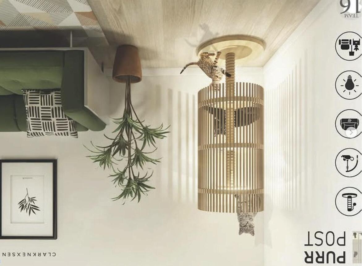 This year, our team designed a cat tower that also serves as a stylish piece of furniture with a fun lighting aspect that both cats and owners can enjoy. The tower includes a scratching post and platforms that cats can jump through and interact with. Our design won two awards: Craziest Cat (awarded to the most unique design), and People’s Choice “Reserve Champion.”
