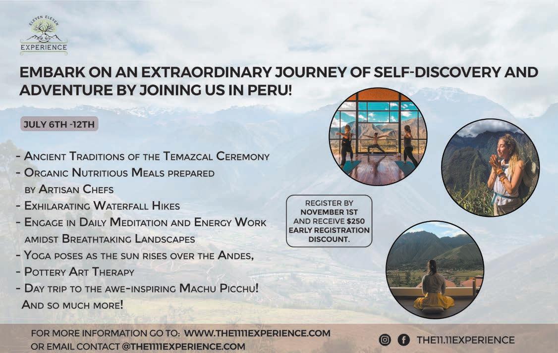 6 Westchester/Putnam/Dutchess NY Edition WakeUpNaturally.com ONLINE EXCLUSIVES VISIT US AT WakeUpNaturally.com Find additional articles online at WakeUpNaturally.com. Go to the homepage and explore local businesses and events, recipes and articles exclusively from Natural Awakenings. WESTCHESTER-PUTNAM-DUTCHESS NY EDITION WAKEUPNATURALLY.COM SEPTEMBER 2023 HEALTHY LIVING | HEALTHY PLANET FREE WELLNESS TRAVEL YOGA MONTH The Awareness Ingredient Adding Mindfulness to Mealtime YOGA FOR FITNESS Letting Travel Change Us Spiritual Trips for Personal Enrichment EMBRACING THE WINDING ROAD Visit our online calendar for more events, classes and workshops. CALENDAR COMMUNITY SPONSORS Ask us how your business can become an Online Community Sponsor. Includes a monthly online article, a featured online business listing and a featured event. Limited spots available. CLICK ON WakeUpNaturally.com Stay informed with our up-to-date articles, local event listings, special offers, insights and more! @nawestchester Natural Awakenings Westchester/Putnam NY Take advantage of EXCLUSIVE ONLINE OFFERS. FOLLOW US ON SOCIAL MEDIA SIGN UP FOR OUR EMAIL STEPHEN COPE on Finding Your Calling MEDICAL TOURISM Navigating the Risks and Rewards HEALTH BRIEFS Testing Acupuncture for Long-Term COVID Children’s Physical Activity Declined Since Pandemic GLOBAL BRIEFS Ayurvedic Cosmetics on the Rise RECIPE Hearty Quinoa Salad DIRECTORY Find local businesses with ease at WakeUpNaturally.com