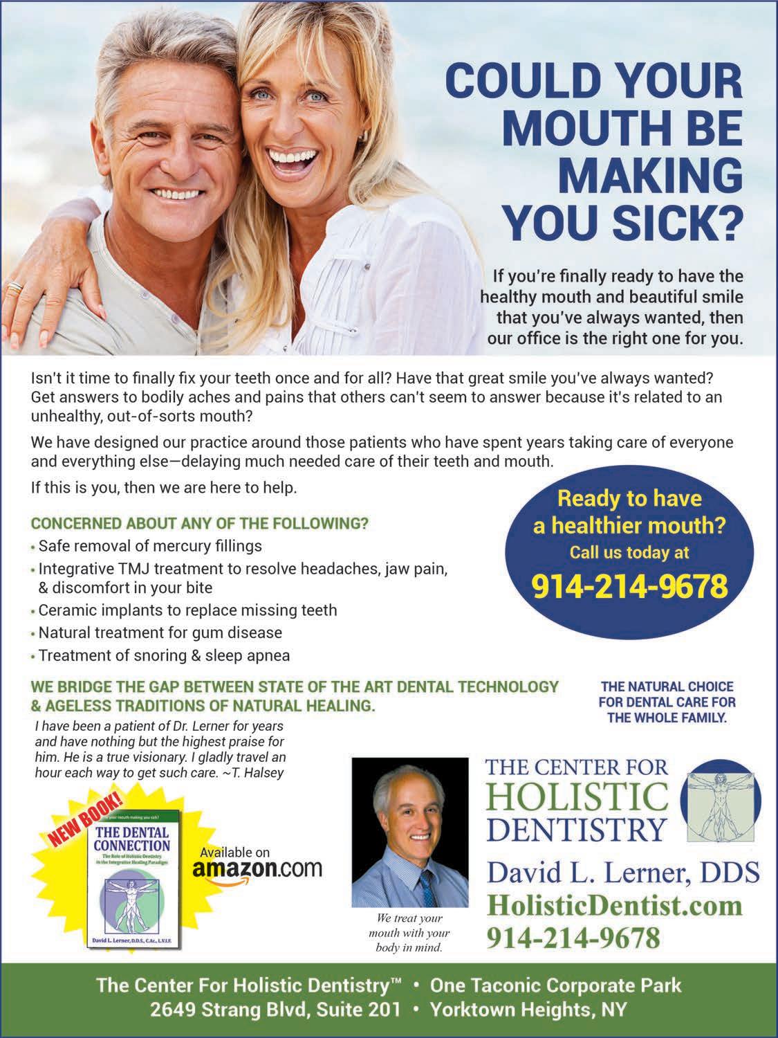 We offer a unique approach to the health care of the mouth based on a holistic understanding of the whole body. I invite you to explore our website to learn how we can serve your needs. See ad, page 5.