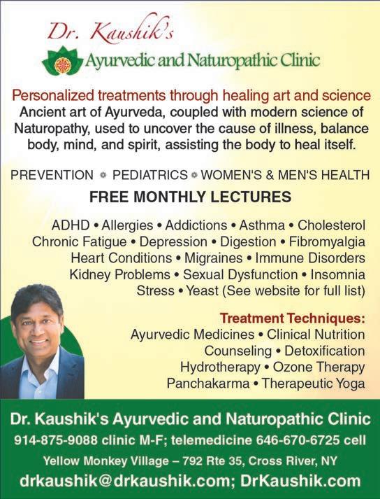 Combination of yurveda and aturopathy is used to create a unique treatment plan to regain and maintain health. Based on one’s particular body constitution dosha , a plan may include supplements, diet nutrition suggestions, lifestyle management, detoxification, hydrotherapy, ozone therapy, anchakarma. Clinic days onday riday. See ad, page 12.