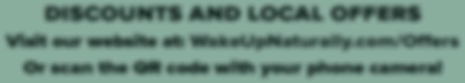 DISCOUNTS AND LOCAL OFFERS Visit our website at: WakeUpNaturally.com/Offers Or scan the QR code with your phone camera! FIND EXCLUSIVE ONLINE OFFERS