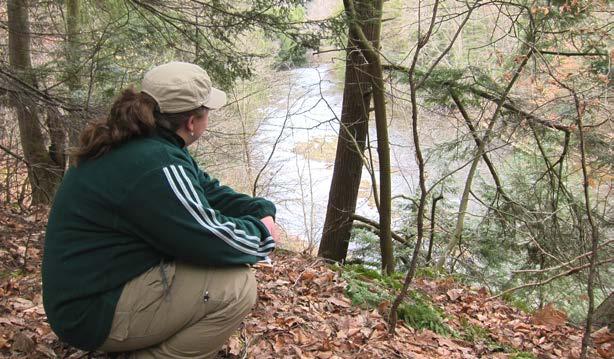 WPC Land Protection Manager for the Laurel Highlands Jane Menchyk, photographed here at the bank of a local river, says water quality decisions are at the core of almost every land conservation conversation. “When a landowner decides to make a conservation commitment through a conservation easement, they help to ensure that water has an opportunity to be restored when it passes through the land for generations to come.”