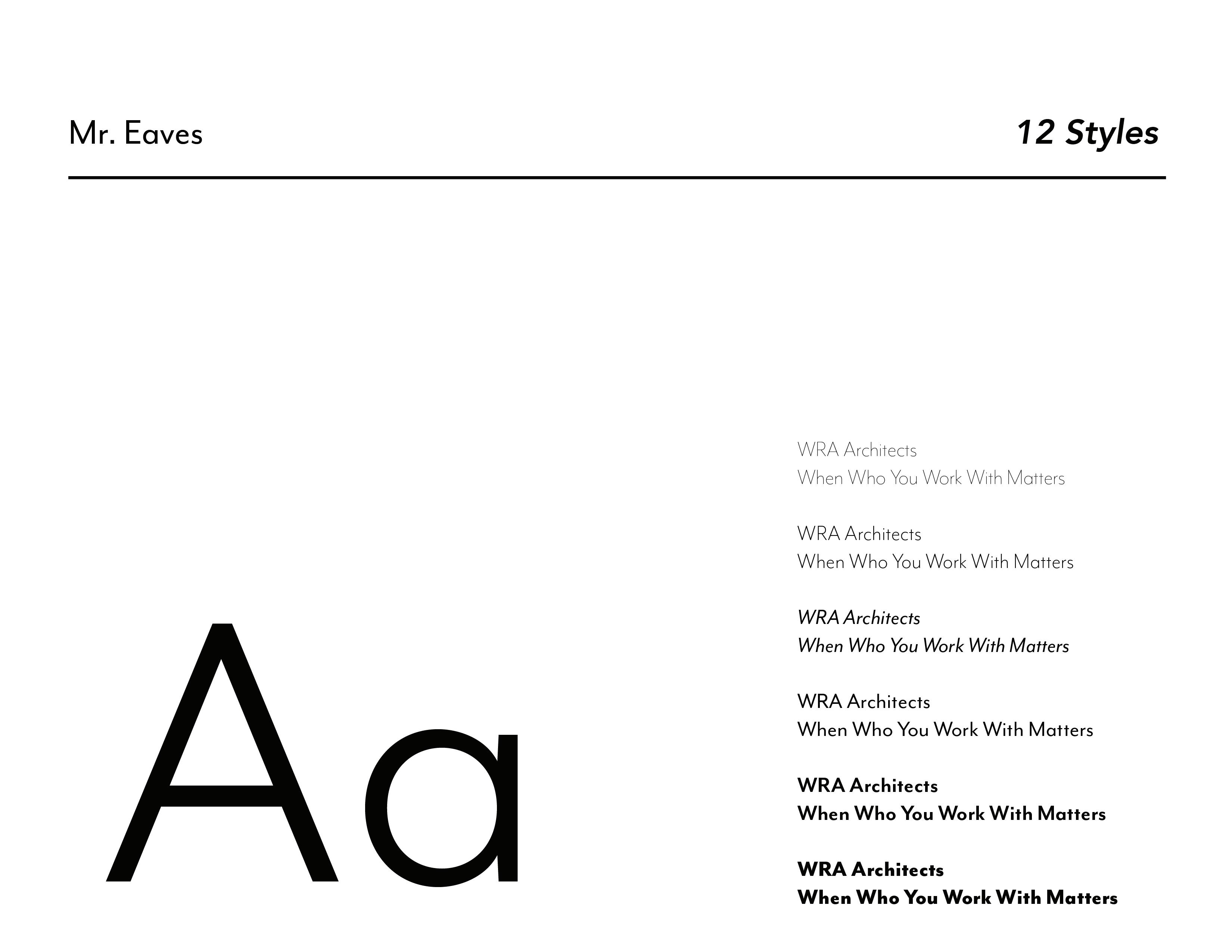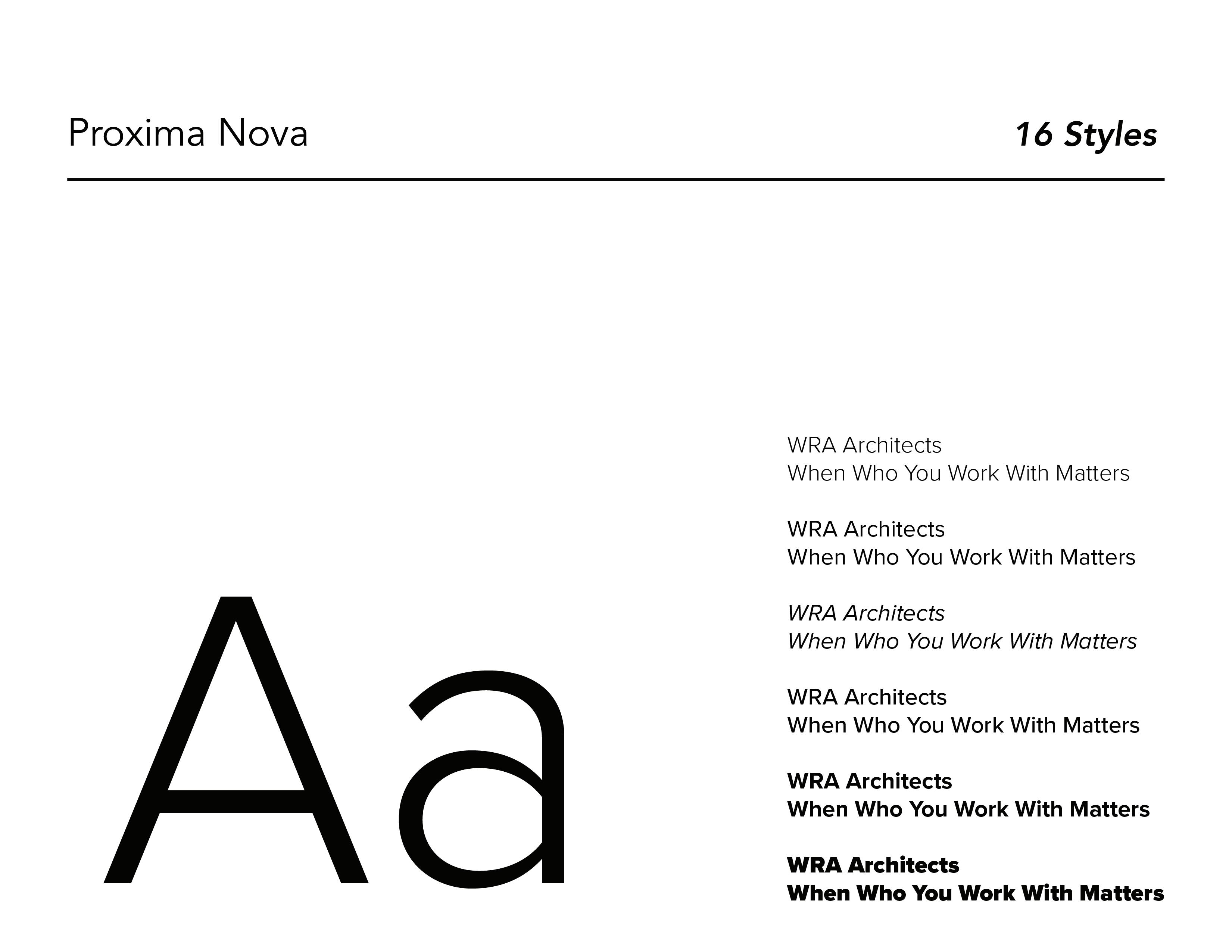 We don’t. We need to update our brand to match the innovative, highquatily work we’re producing on the design side of our firm. This is why we would like to call this project ‘Growing our Brand’, not a Rebrand. Each of these brands on the left has a distinct look and feel. Something WRA is lacking.