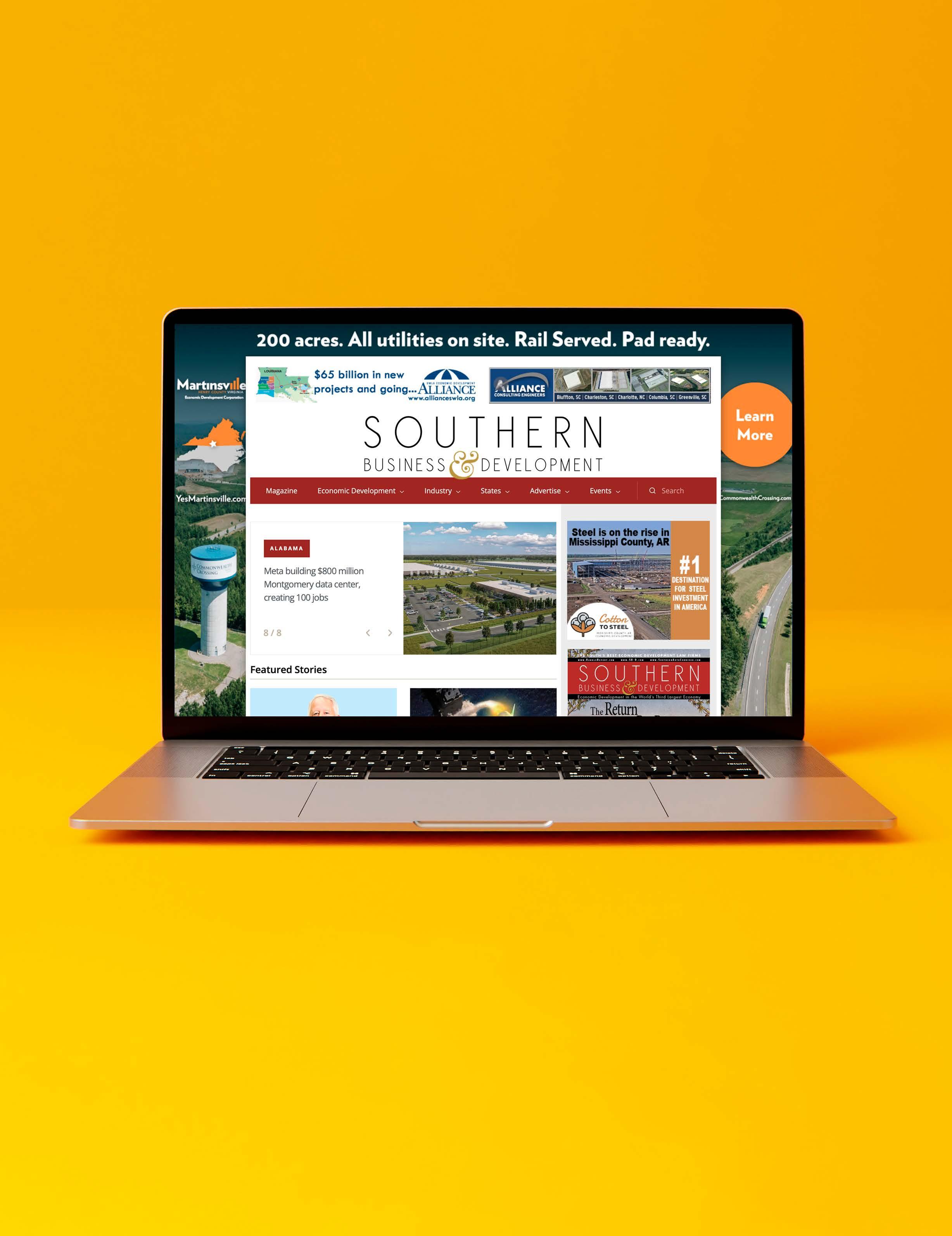 Southern Business & Development (ISSN 1067-8751) is a registered trademark TM. Founded in 1992 and published quarterly by MCR Publishing, Inc. Affiliated Websites include www.SouthernBusiness.com, www.SB-D.com, www.SouthernAutoCorridor.com. Office address: 8086 Westchester Place, Montgomery, AL 36117. To subscribe, email stacy@sb-d.com. Annual subscription: $25. Single edition delivery by three-day mail: $10. Information contained in SB&D and on its websites is gathered from reliable sources, however, the accuracy of this information is not guaranteed. All rights reserved. Permission must be granted by SB&D for reprint rights, in whole or in part. Copyright 1992-2024. Southern Business & Development TM 1997. Southern Auto Corridor and Southern Automotive Corridor TM 2003.