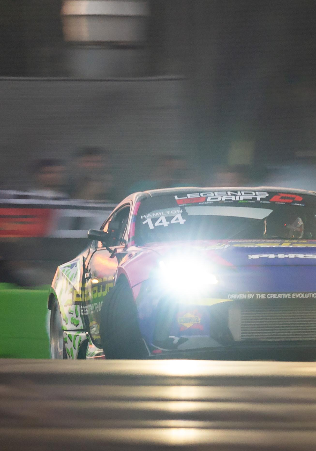 For fans, Minowa represents the soul of drifting; a competitor who doesn’t just show up to the track, but also builds the very machines he drives. Add into the fact that both his wife, Masayo, and son, Hiro, drift as well, and he’s the epitome of the total package when it comes to drifting is life. His garage in Tokyo doubles as a laboratory, where steel and hard work become suspension arms, custom knuckles, and competitionready builds that blur the line between tradition and innovation. He’s as comfortable welding in a t-shirt as he is throwing down against the world’s best drivers. In a sport where sponsorship dollars and marketing often dominate the conversation, Minowa has carved out a reputation built on authenticity, craftsmanship, and an iconic dedication to the culture’s roots.