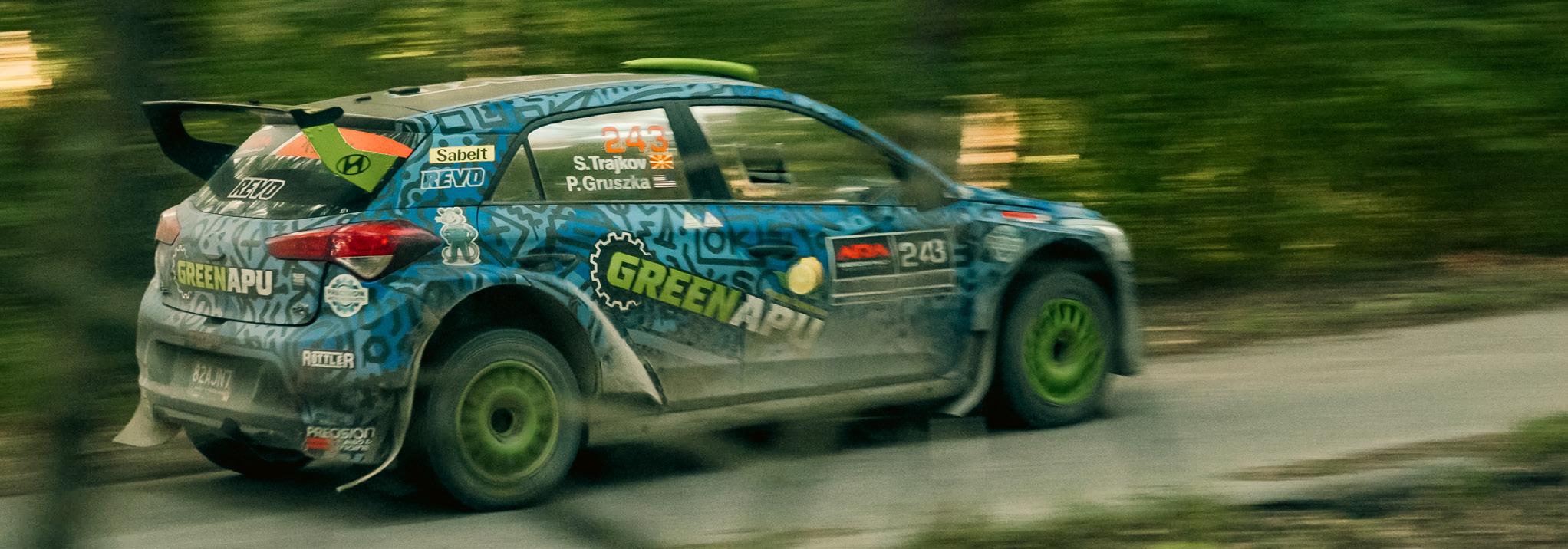 Trajkov, driving a 2019 Hyundai i20 RC2. This is a Rally2 variant of a small hatchback only sold overseas. The livery of this Hyundai was designed by none other than Marcus Jurgensen himself, the creative mind behind many of Ken Block’s iconic liveries. This is Pat’s 3rd time at Boone and the team he competes for, Green APU, is opening a facility in Boyd County, Kentucky. The location of the new facility puts it close to where they filmed an award winning Gymkhana-esque short film called “The Appalachian Application”, in which Pat slides an Evo X swapped AWD Mitsubishi Mirage around the town and even hits a jump! (Big fan, worth a watch)