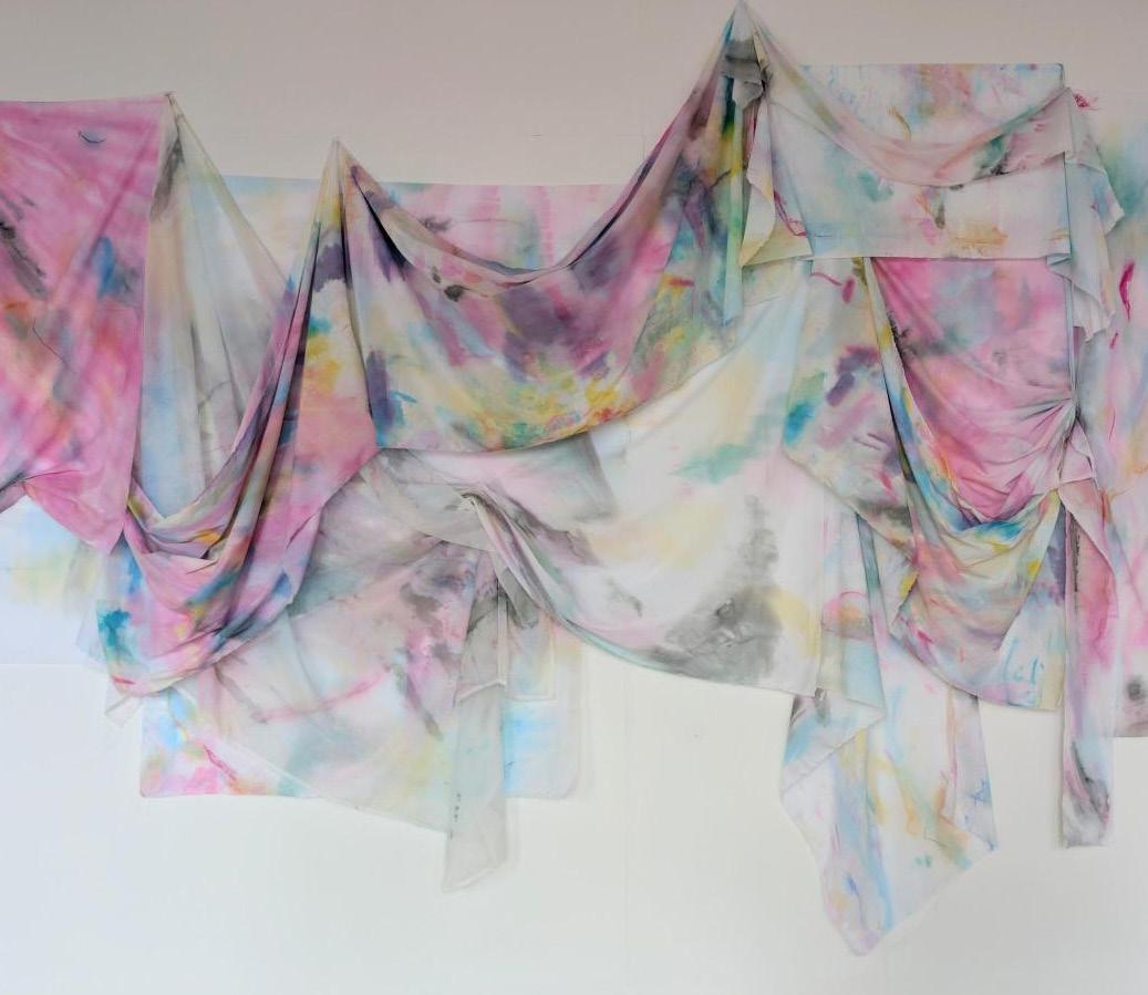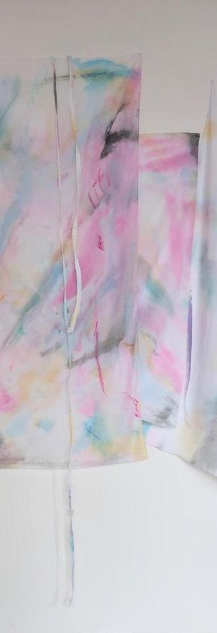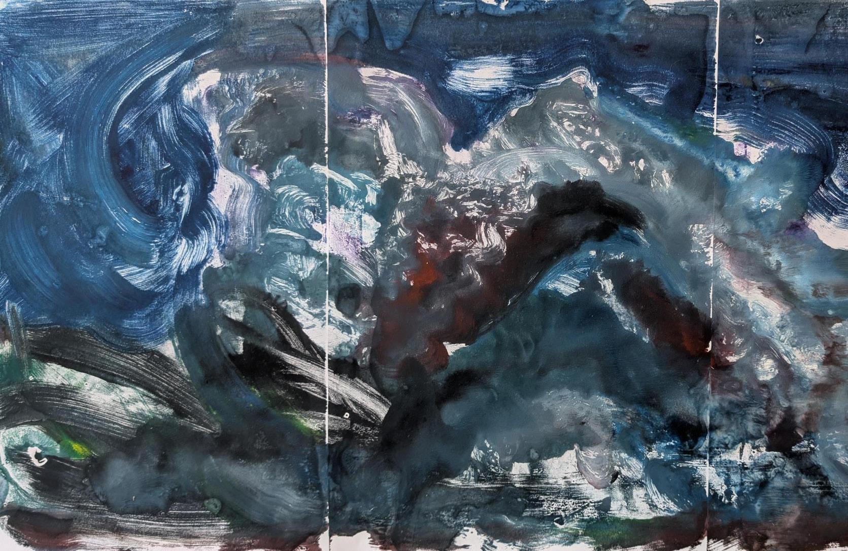 Rwyf wedi dechrau mwynhau gweithio ar bapur, gan fod wyneb y paent yn newid ac yn datgelu gweadau newydd, ac rwy’n cael fy nenu’n arbennig gan uniongyrchedd y weithred o wneud marc. Boed yn gweithio ar leoliad neu yn yr ystafell stiwdio, rwy’n ymateb i symudiad a newidiadau lliw Môr Iwerddon, gan geisio amsugno a chyfieithu’r argraffiadau newidiol hyn i’m gwaith.