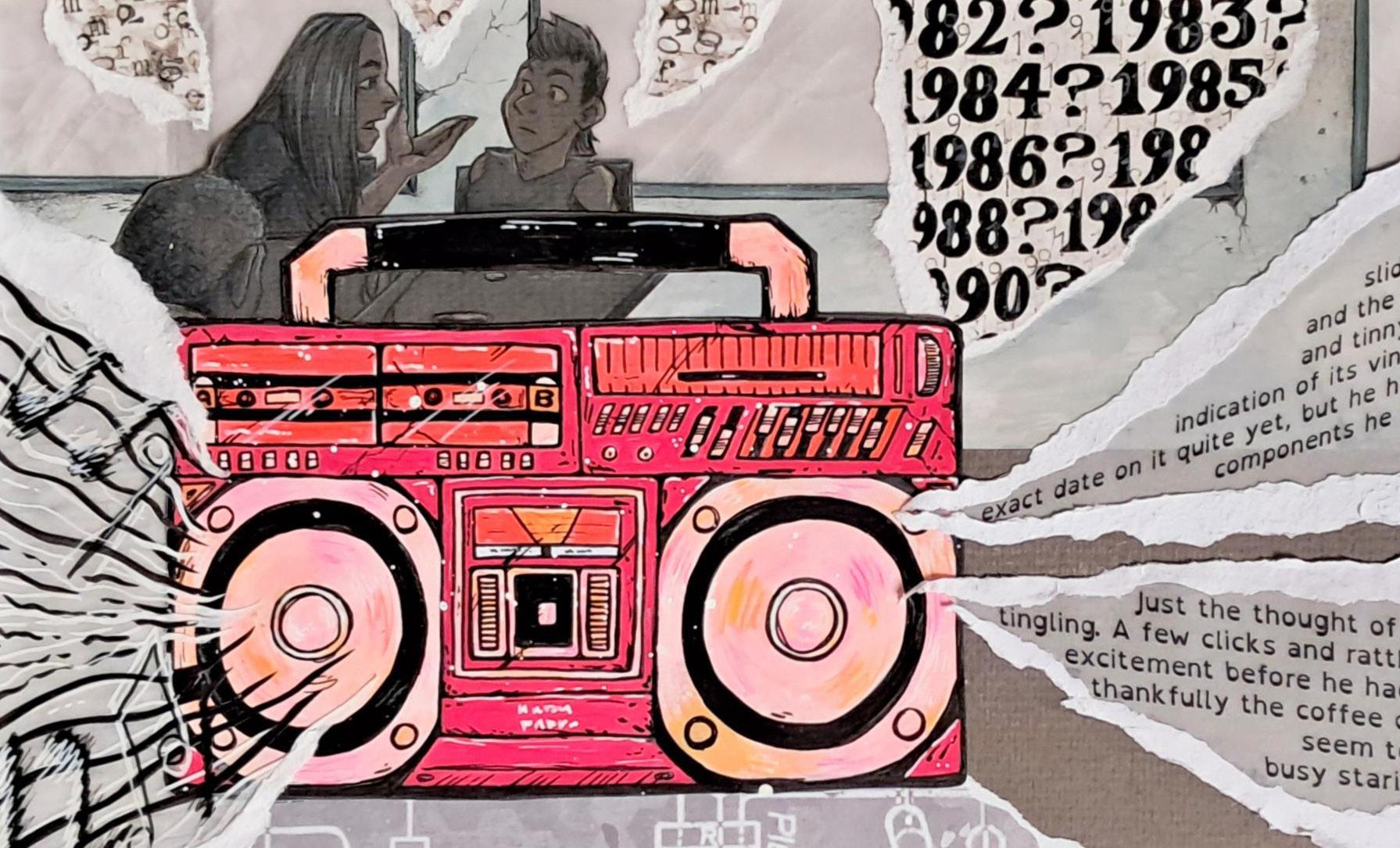 Rwy’n gweithio’n agos gyda’r awdur Dazz Thomas, gan ddatblygu pantheon o straeon rhyng-gysylltiedig, wedi’u gosod mewn dyfodol amgen ac wedi’u hysbrydoli gan ein diddordebau a’n profiadau personol. Mae llawer o fy ngwaith diweddar wedi bod yn canolbwyntio ar ddarparu darluniau ar gyfer Frequency, stori fer o’r lleoliad hwn. Wedi’i ysbrydoli gan sawl stori ffuglen wyddonol, mae Frequency yn gosod y prif gymeriad canolog, Razer, mewn sefyllfa gyffredin sydd serch hynny’n profi i fod yn estron ac yn annifyr iddo. Mae’r naratif yn ei ddilyn wrth iddo ymdrechu i ddilyn ‘The Rules’ o lywio rhyngweithiadau cymdeithasol anghyfarwydd i fynd ar drywydd un trysor - hen radio wedi’i chwistrellu â phaent.