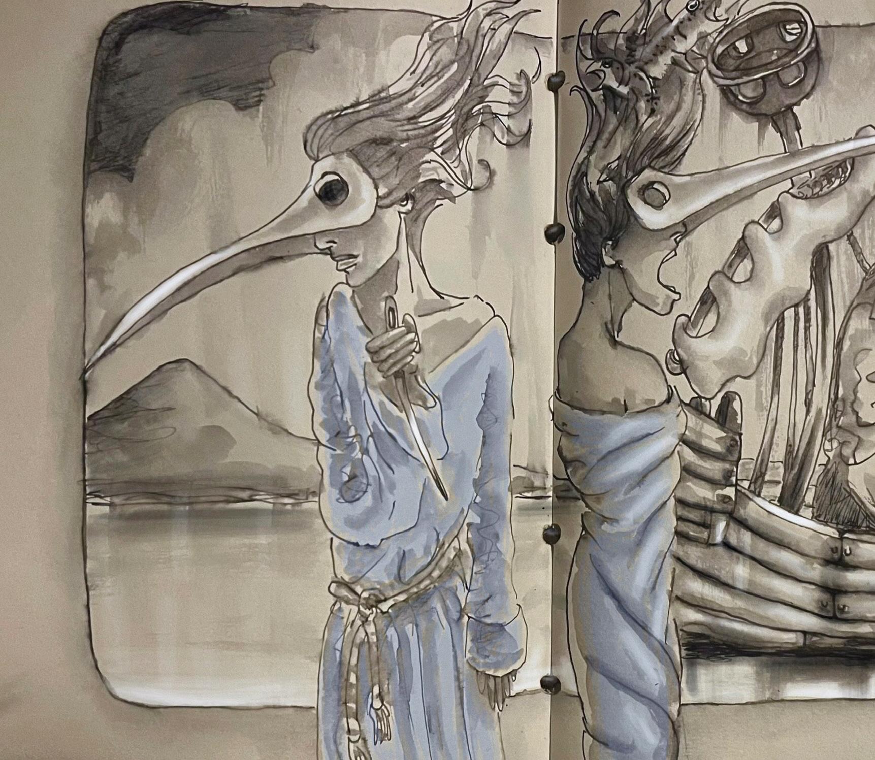 Gan weithio gyda chyfryngau cymysg, rwy’n archwilio creadigrwydd nid yn unig fel math o fynegiant ond fel ymarfer dynol hanfodol. Mae fy nhreftadaeth Groeg/Prydeinig yn siapio fy nealltwriaeth o ddiwylliannau, hanesion a thraddodiadau, ac yn tanio fy chwilfrydedd am yr hyn sy’n ein cysylltu ni fel pobl.