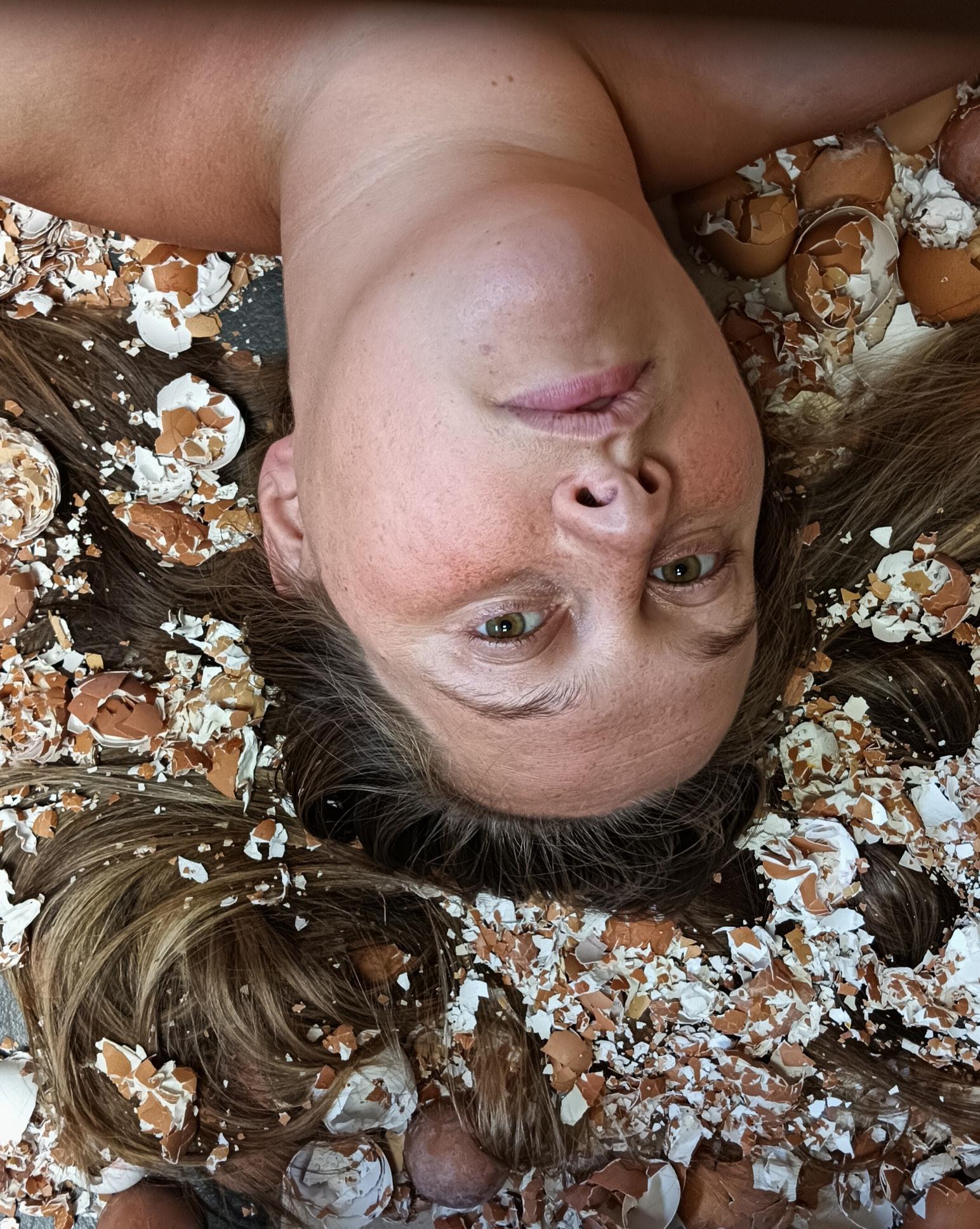Dechreuais hefyd tiwnio i mewn i’r hyn sydd ei angen arnaf fwyaf: llawenydd, tawelwch a charedigrwydd. Gan drin fy hun fel safle archwilio, roeddwn i wedi ymrwymo i ddefodau dyddiol sy’n fy maethu a’m daearu. Lle roedd fy ngwaith unwaith yn cael ei danio gan gynddaredd a chamddealltwriaeth benywaidd, mae bellach yn teimlo fel llythyr cariad i mi fy hun, fy enaid. Gwahoddiad i ddeall a gwella, tyfu a maethu pwy oeddwn i, ydw i ac y byddaf yn bod. Neu efallai mai dim ond graffiau sarcastig a plisgyn wyau wedi’u malu ydyw - byddaf yn gadael i chi benderfynu.