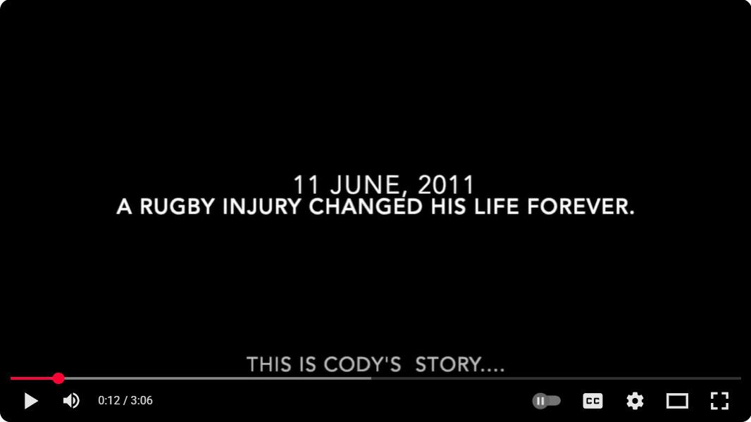 Growing up, Cody dreamed the dream of many Kiwi boys: to represent his country in rugby. But in 2011, aged 15, his neck was broken in a tackle playing for Shirley Boys’ High in Christchurch. As he was loaded into the ambulance, he insisted on keeping his boots on – he’d be back, after all. And when doctors told him he’d never walk again, he brushed it off. Denial soon gave way to determination to make the best of his situation.