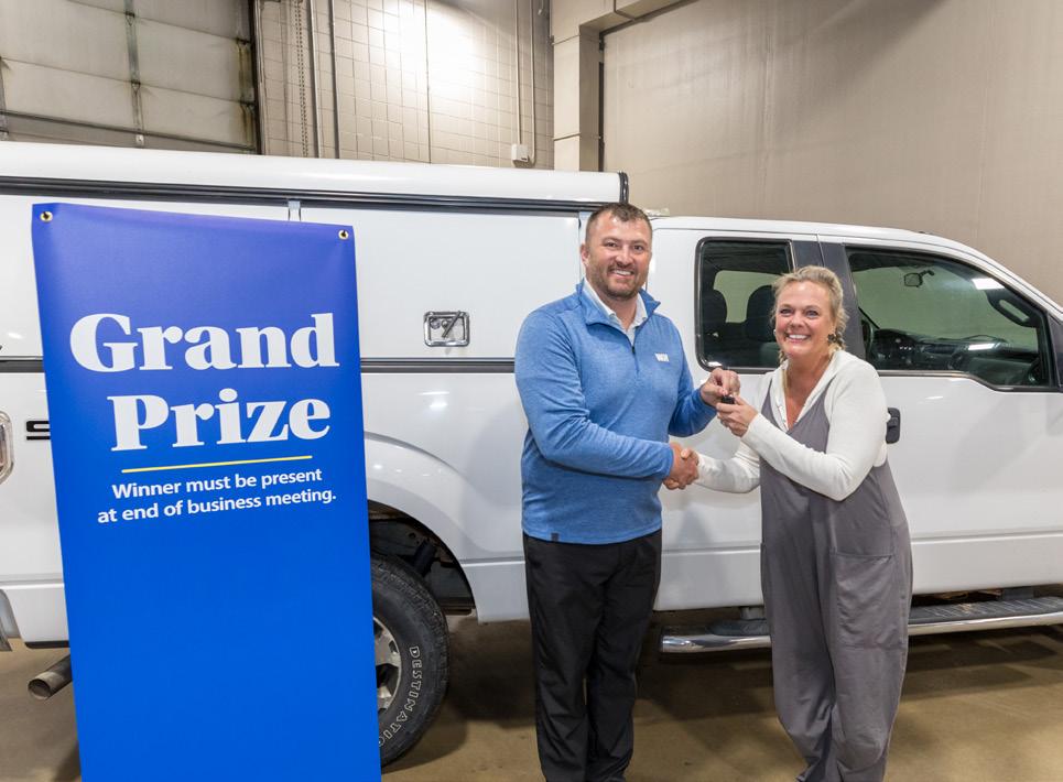 DEAN JENKINS of Cokato wins a credit for 35 kWh, January’s output from WH’s second solar panel array.