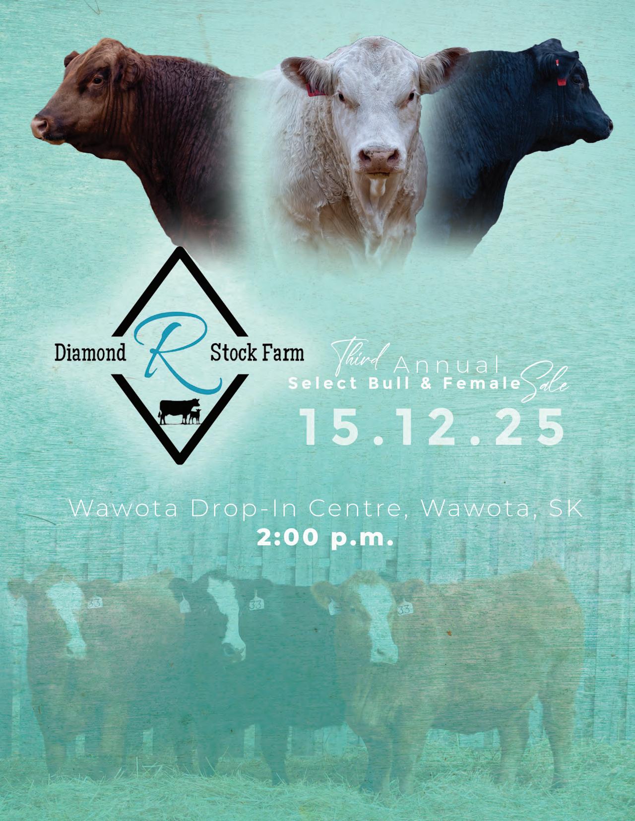 Welcome to the 3rd Annual Diamond R Stock Farms Bull & Select Bred Commercial Female Sale with Guest Cudmore Farms.