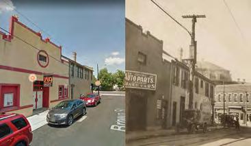 ABOVE: SOUTH BROWN STREET, JUST SOUTH OF FIFTH STREET, LOOKING NORTH, SHOWN IN GOOGLE MAPS TODAY (LEFT) AND IN 1923.