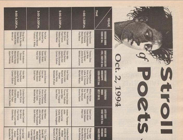 It’s been 30 years since the first Stroll in September 2021 what a great opportunity for us to celebrate our remarkable poetry community. During this coming year, we want to recognize the contributions of members past and present, and imagine the future. It’s also an opportunity to let more people know about the Stroll.