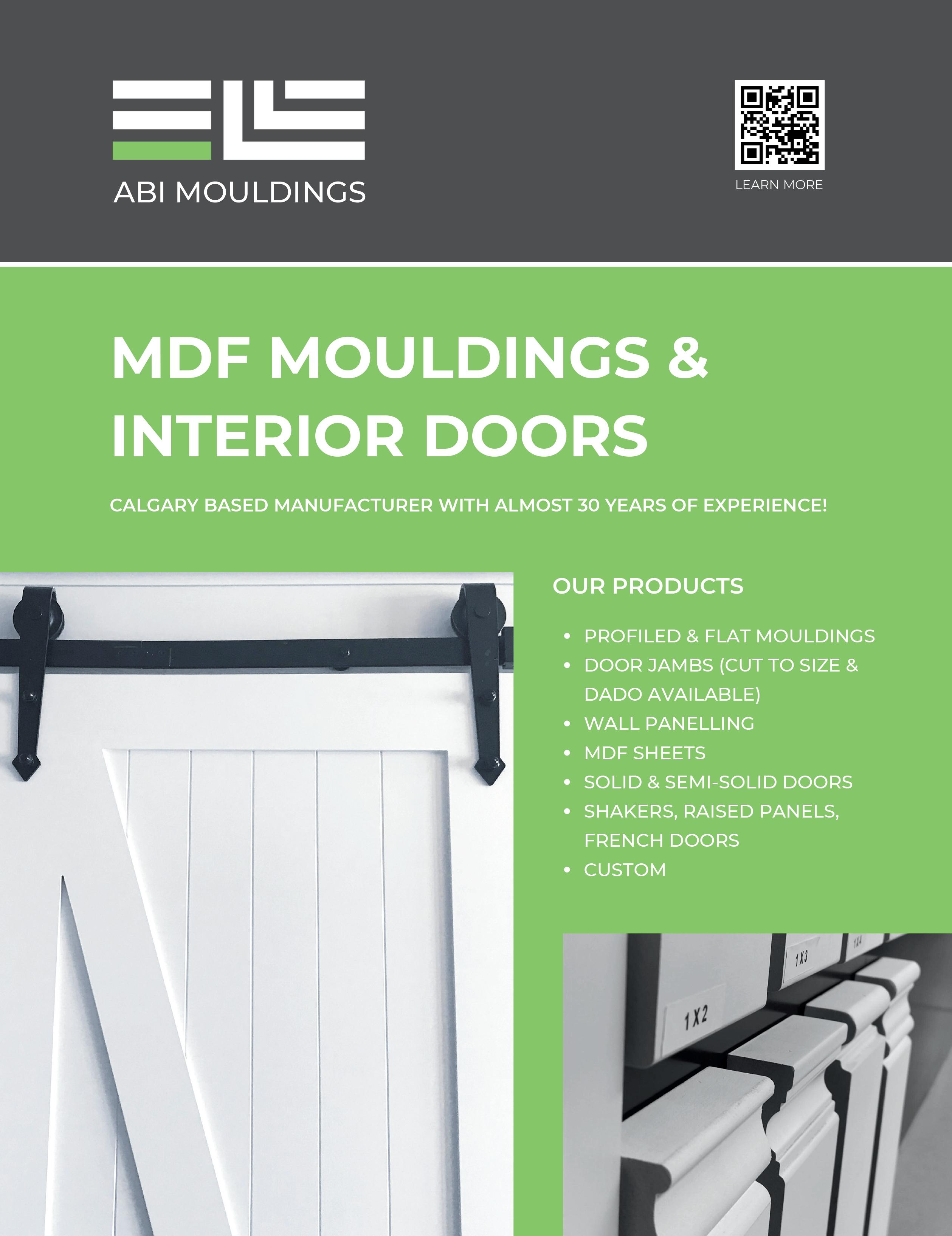 ABI Mouldings takes pride in its diverse product range tailored to meet the needs of customers. From baseboards to casings, shiplap to door jambs, ABI's offerings epitomize craftsmanship and durability however, it's our MDF interior doors that steal the spotlight. Available in solid and semi-solid variants, these doors are sought after for their impeccable finish, longevity, and aesthetic appeal embodying our commitment to excellence. It's worth noting that ABI is capable of manufacturing custom mouldings and doors catering to unique customer requirements.