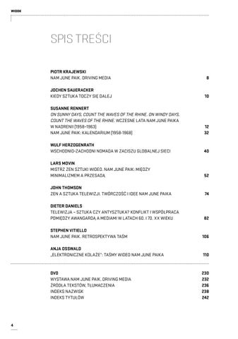 DVD WYSTAWA NAM JUNE PAIK. DRIVING MEDIA ŹRÓDŁA TEKSTÓW, TŁUMACZENIA INDEKS NAZWISK INDEKS TYTUŁÓW