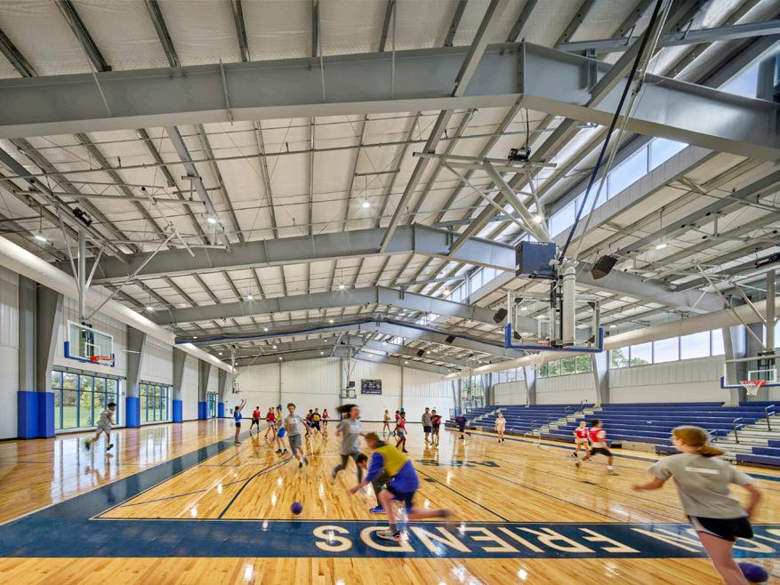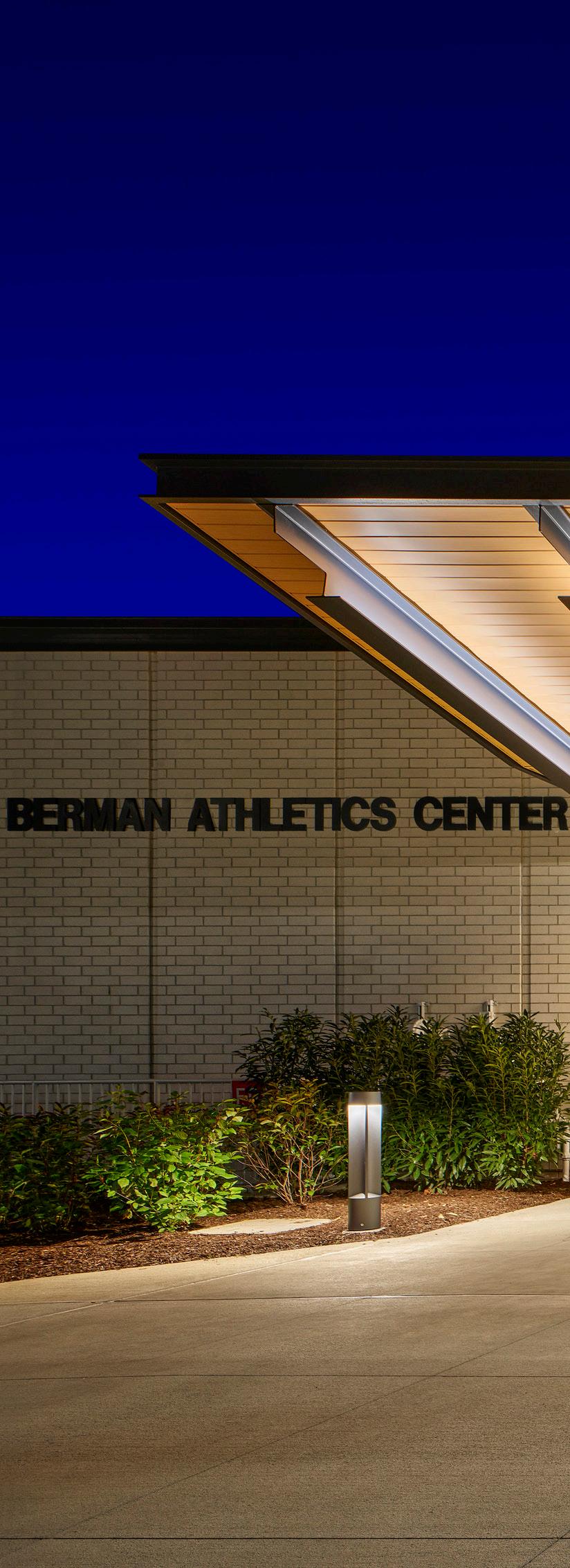 The existing building was transformed into a state-ofthe-art fitness center with new locker rooms, offices, and team rooms, and the new field house would hold a regulation basketball court (with stadium seating), a lobby with concessions, and a multi-purpose space for general campus use.