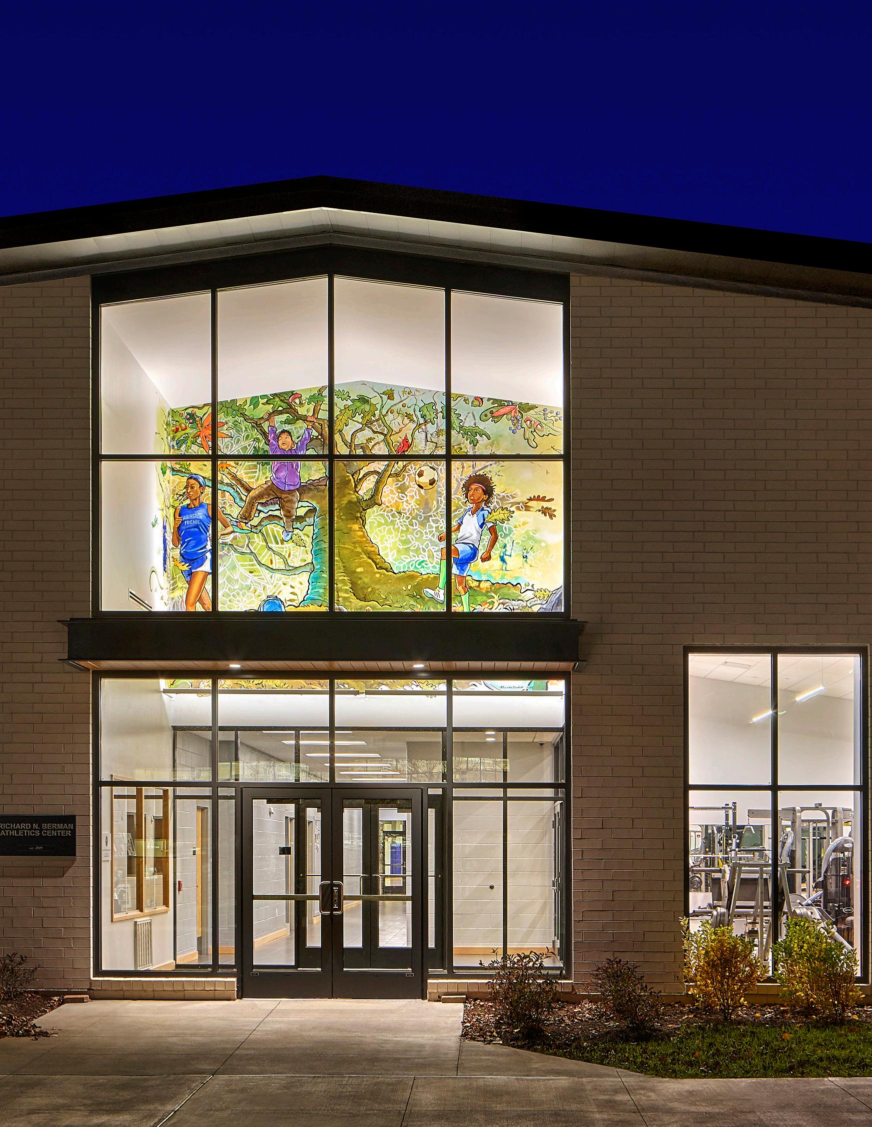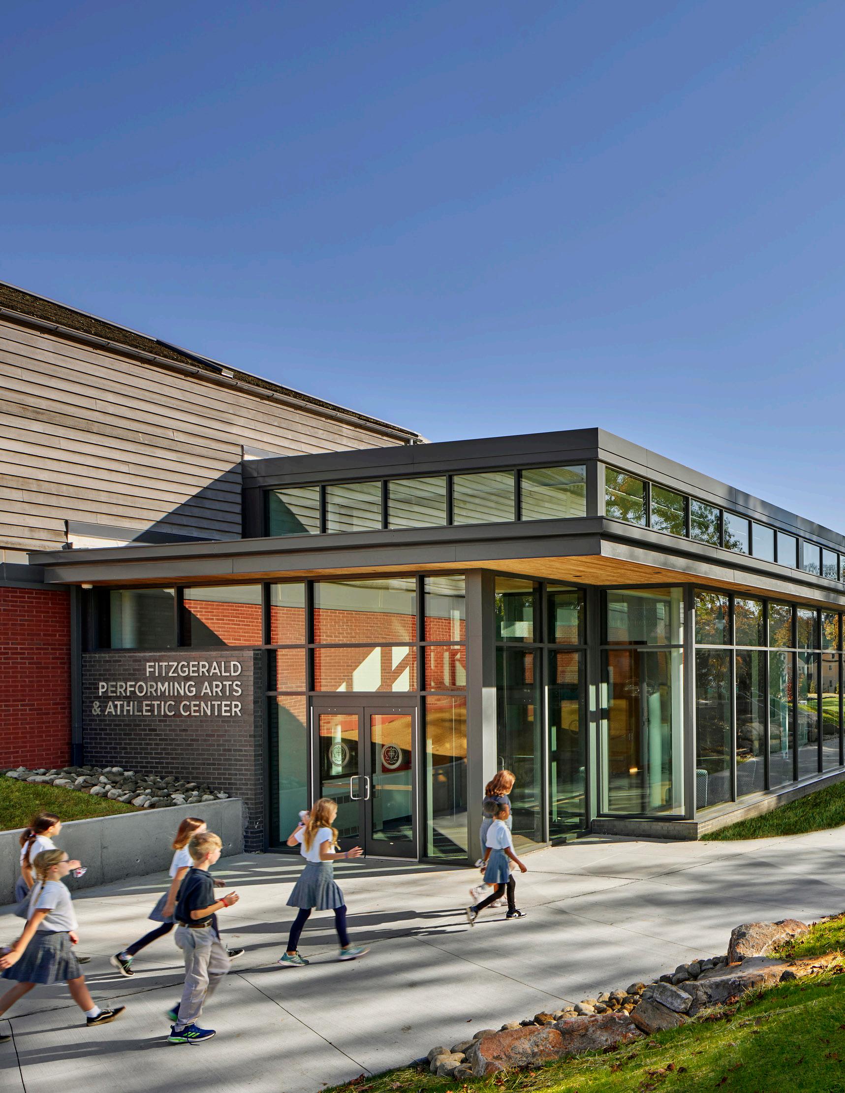 Holy Child School at Rosemont (Holy Child) is an independent, co-educational, Catholic school educating preschool through 8th grade, situated on approximately twelve acres amidst an institutional/residential neighborhood in Philadelphia’s western suburbs. Part of a historic expansion project that is almost doubling Holy Child’s campus in size, the Fitzgerald Performing Arts and Athletics Center is a 10,996-SF multi-purpose addition to Holy Child’s aging, existing gymnasium building which allows for athletic use, performing arts, and gathering spaces.
