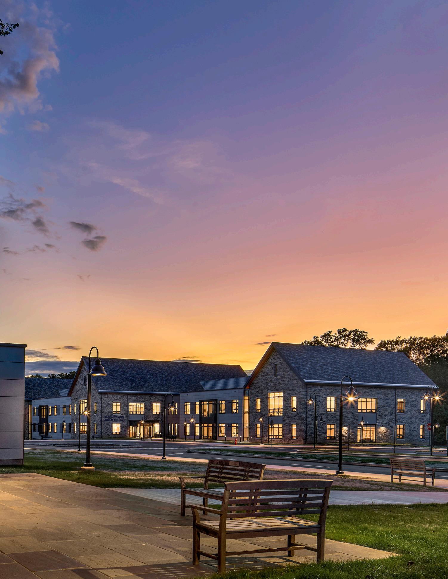 After the adoption of the WRT-led campus master plan, WRT provided feasibility analysis, programming, and design services for the new Middle School—a modern, integrated 21st century learning environment offering traditional and active project-based learning spaces. Each element of the building was determined based on supporting the growth and education of the students. At 30,600 square feet, the three-story building is almost double the size of the original Crosman Hall, allowing students to have spaces where they can collaborate and flex their creativity.