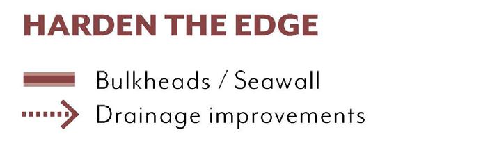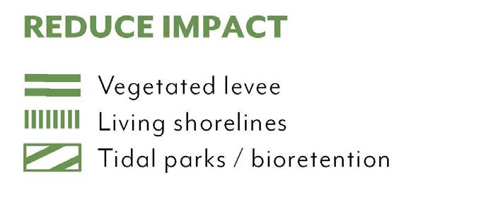 technical studies, and community organizing that are needed to build toward future resiliency. Some areas will be impacted sooner and need more urgent retrofits to storm drains and buildings. Multiple longterm options are also provided to identify potential protective features such as raising public roads or building seawalls in the future.