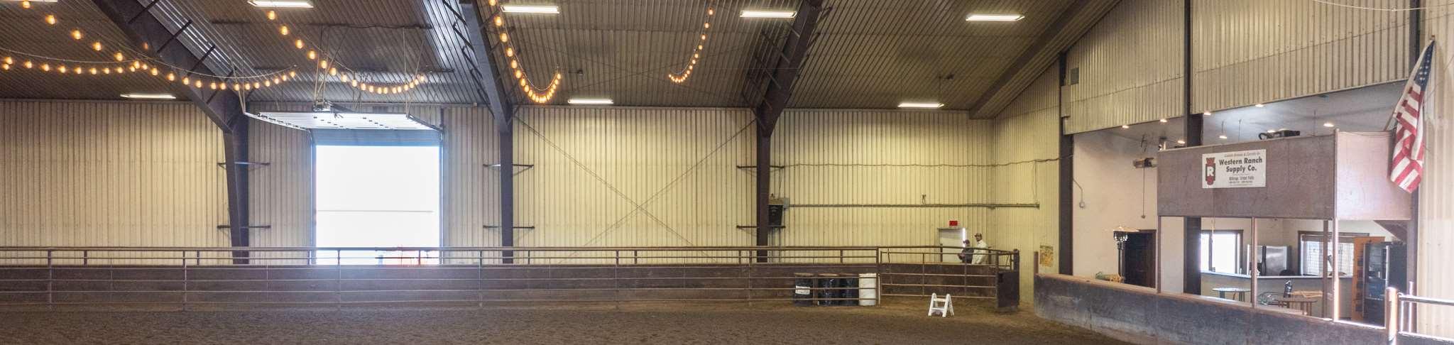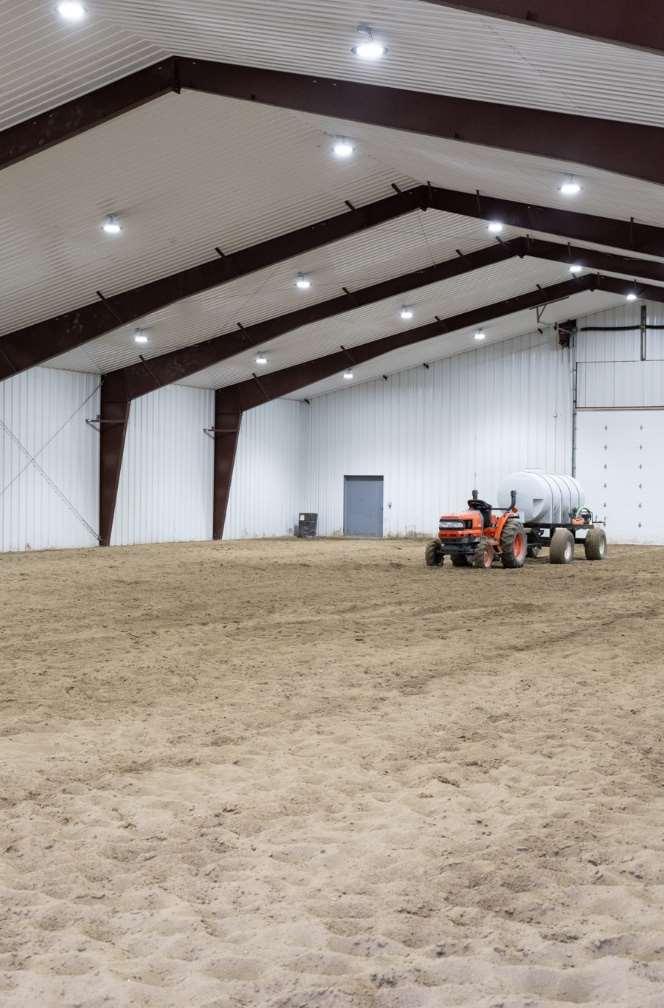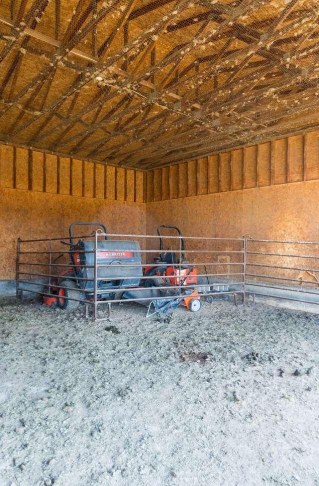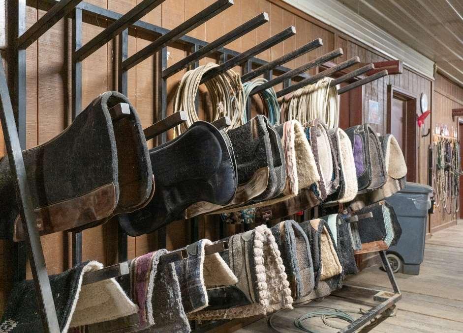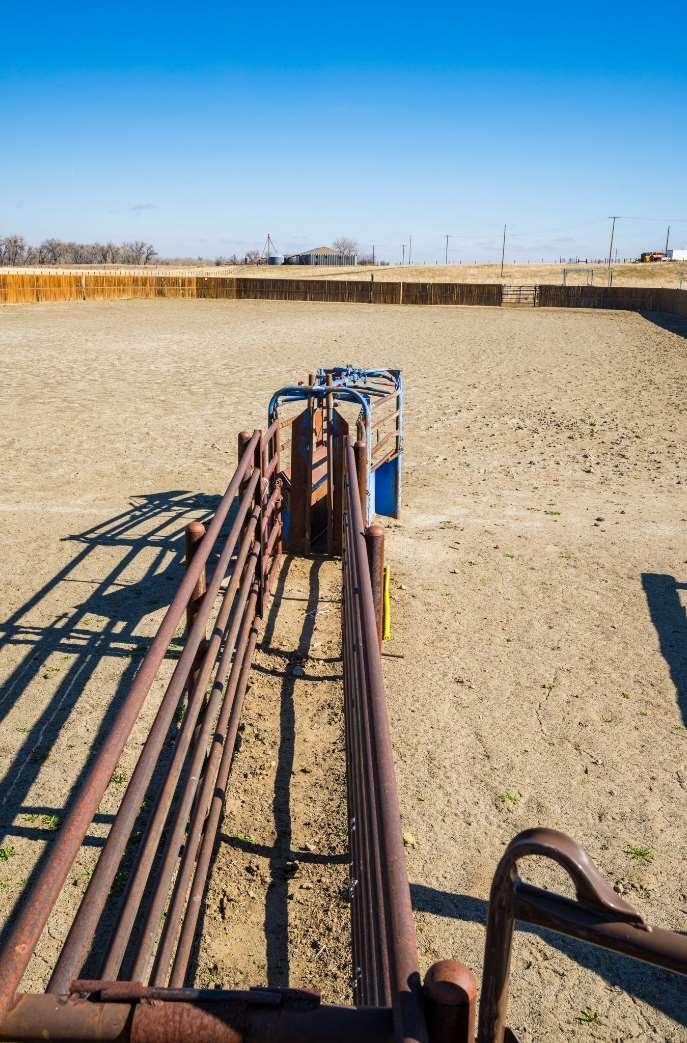 Expansivesteel-framedarenaisversatile,serving primarilyforequestrianactivitiesandeventsbutalso accommodatingweddingsandothergatherings.The eastendofthearenahousesaconcessionstandwith anareaforspectatorstoviewordine,alongsidean announcer'sboothequippedwithanewPAandaudio system.Attheotherend,there’sanattached100x85 holdingbarnwithpensforlivestock,and100’leadup, forstartsandfinishesinbarrelracing.Thewarm-up barn,adjacenttothemainarena,isfullyinsulatedand perfectforpre-eventpreparationsoradditionalevent space.Theflooringconsistsofscreenedsand,andis equippedw/integratedPAtotheMainArena.