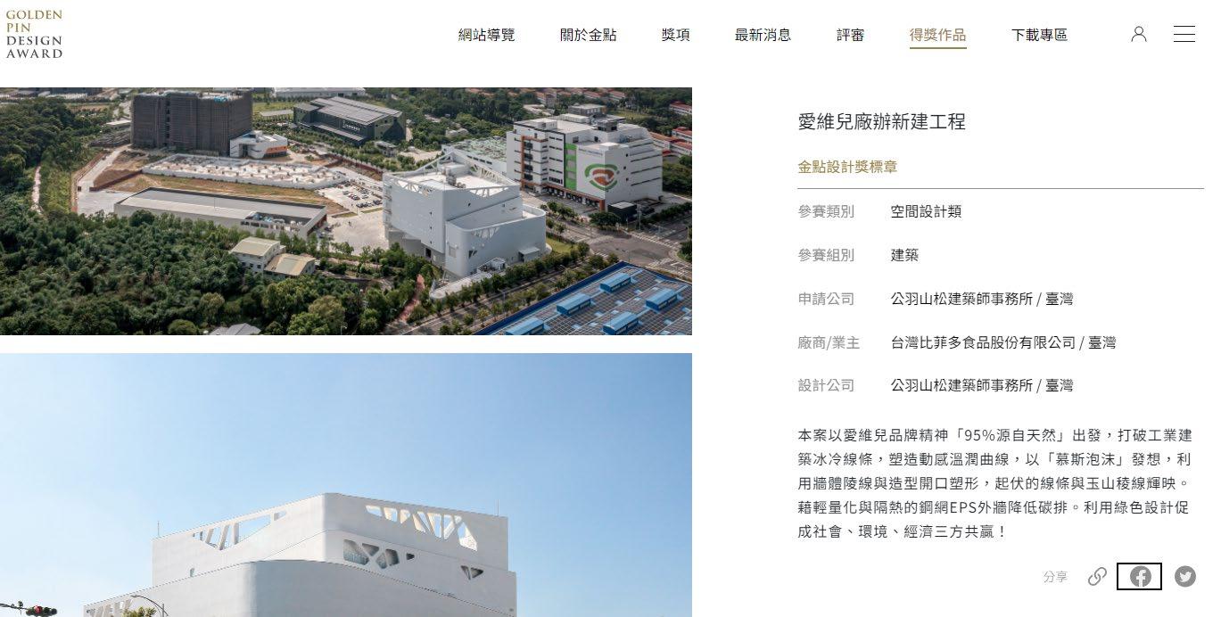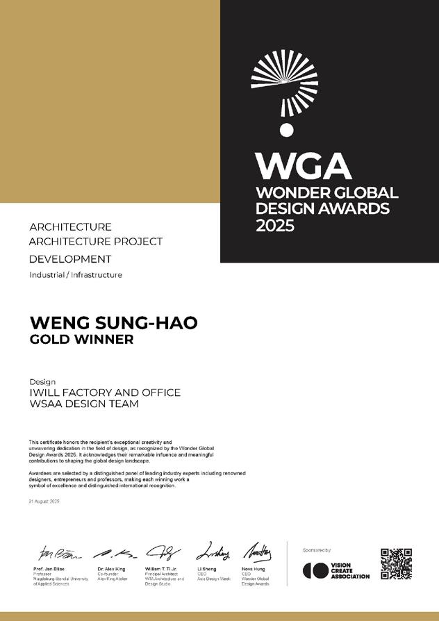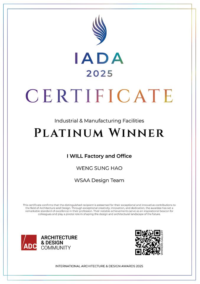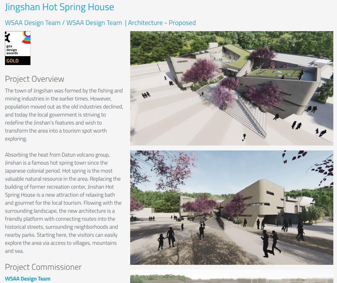 包含三大洲九個國際都市,涵蓋多達 40 個專業領域,在全球設計界具指標意義。世界 知名建築團隊 Foster+Partners 、 UNStudio 及 MVRDV 亦是同年度該類別香港地區金、 銀獎得主。本次有幸與國際知名團隊同獲殊榮,期待能讓世界看見台灣的設計量能。