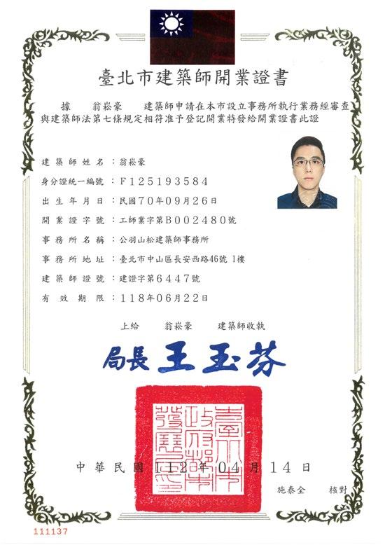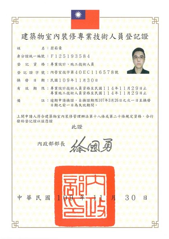 107北市建師字第B00329號 台北市建築物微型室內裝修簽署人員