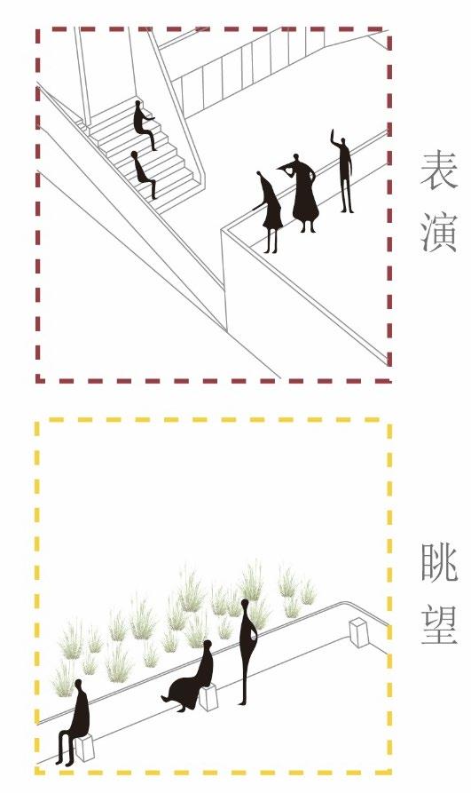 閱讀小屋:用紅色小屋意象 作包廂、綠色稻田作書櫃; 連結在地田園風景,用音符 綠葉經營樹下閱讀的氛圍。