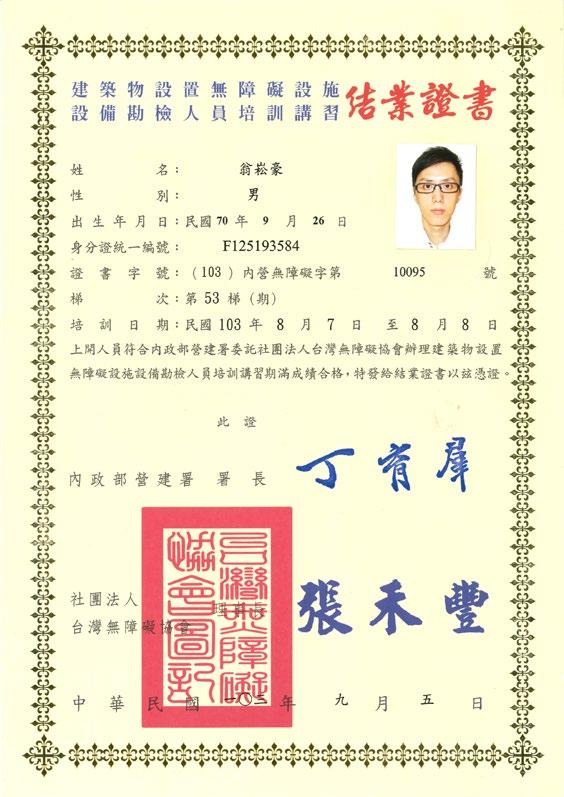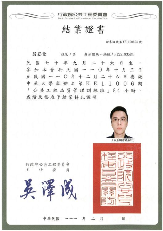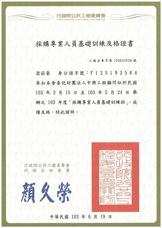 主持建築師多年深根公共工程已取得 採購專業人員 專業證照、建