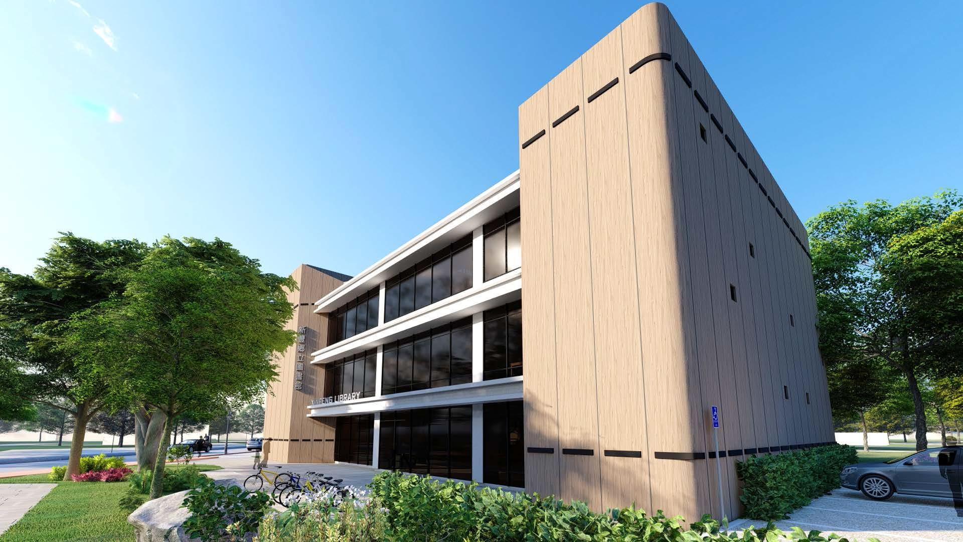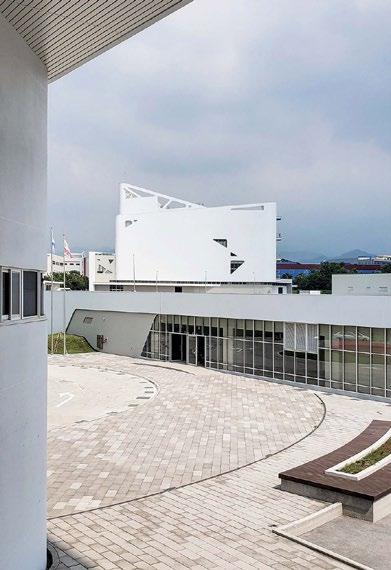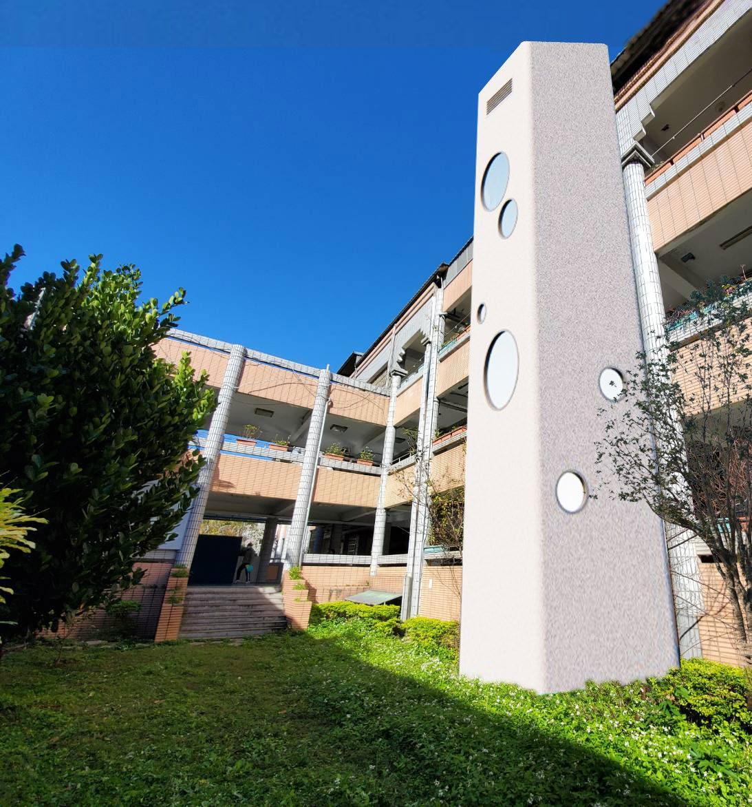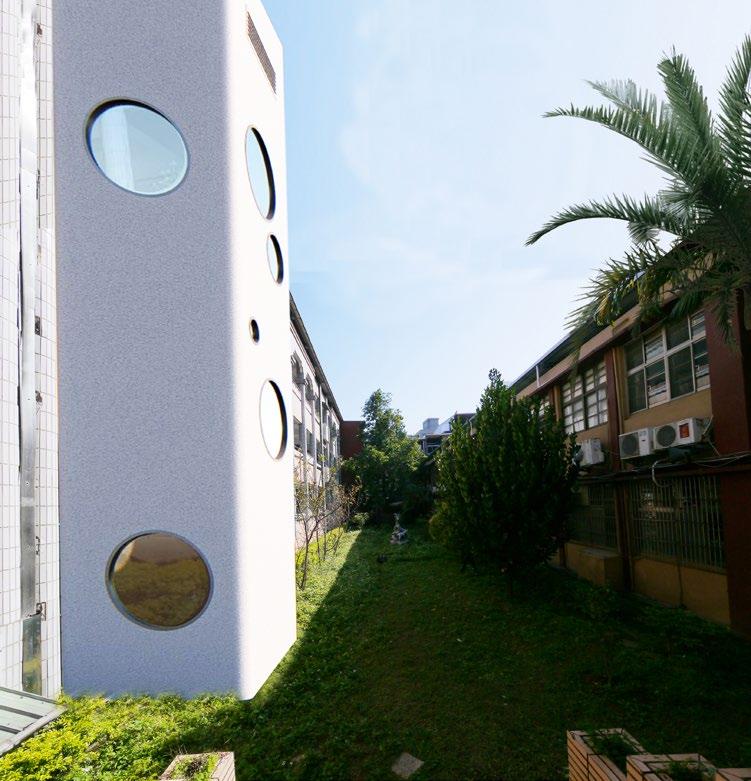 結合公館國小音樂特色校園 環境建構,以”傾聽世界的 聲言”為主要設計概念,用 耳機造型設計出通透的拱型 圓洞,兩側耳罩放置最新書 籍,象徵連接全球最新資訊, 期待透過”閱讀”聆聽探索全 世界。