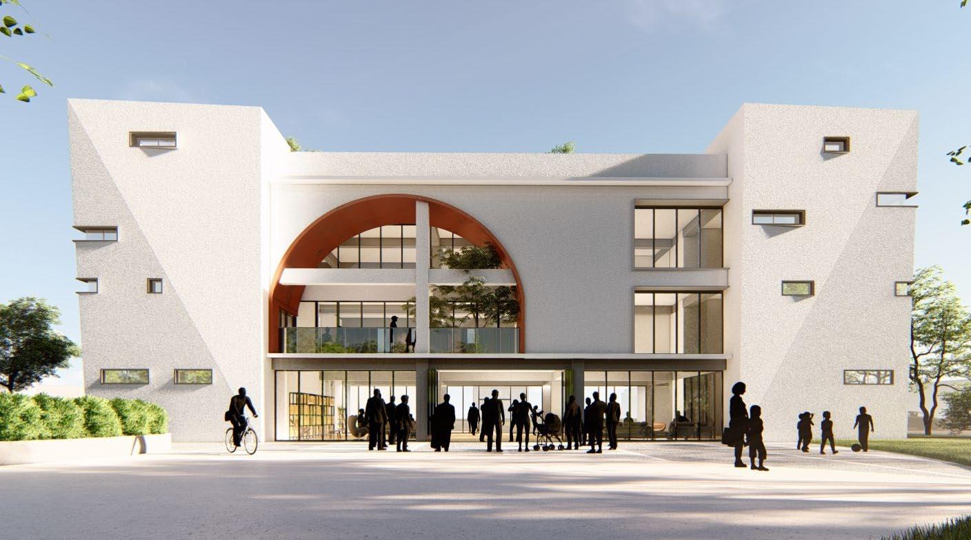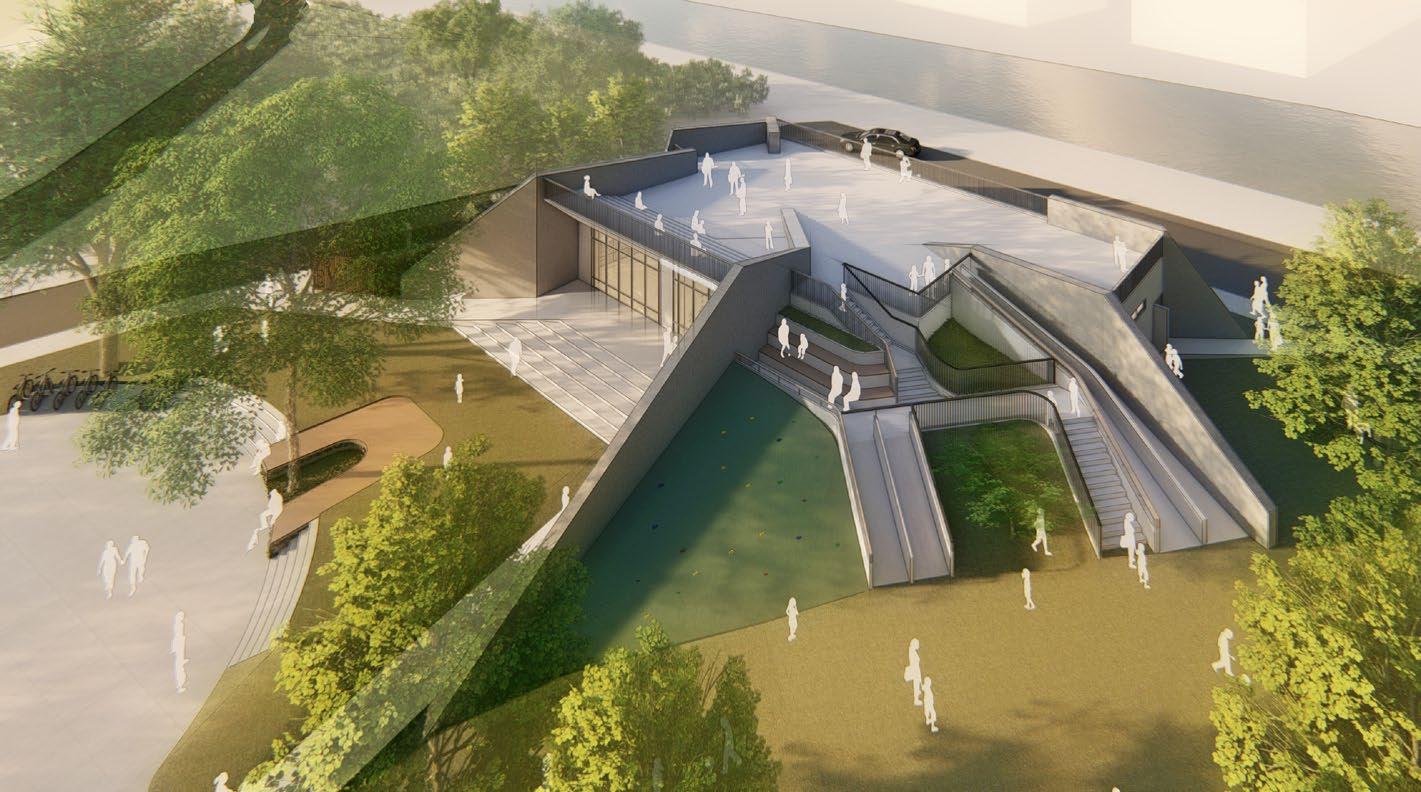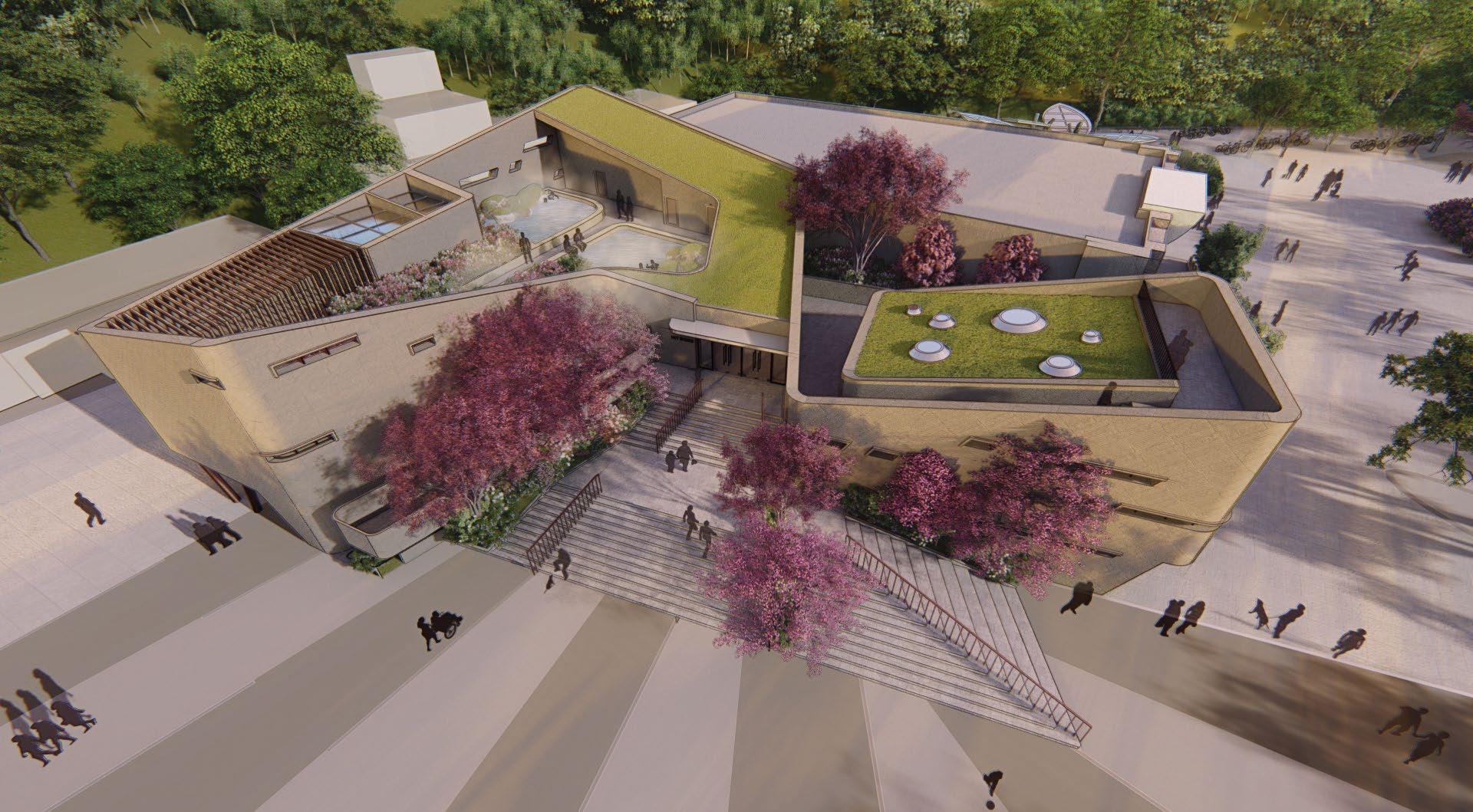 結合公館國小音樂特色校園 環境建構,以”傾聽世界的 聲言”為主要設計概念,用 耳機造型設計出通透的拱型 圓洞,兩側耳罩放置最新書 籍,象徵連接全球最新資訊, 期待透過”閱讀”聆聽探索全 世界。