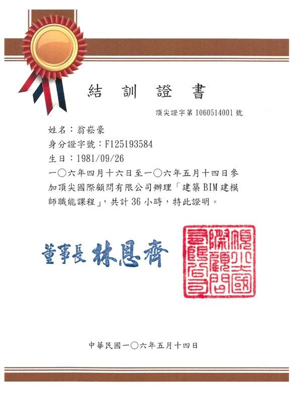 築 BIM 建模師 與 PCCES 經費估價 證書 與公共品質管理 訓練班結業