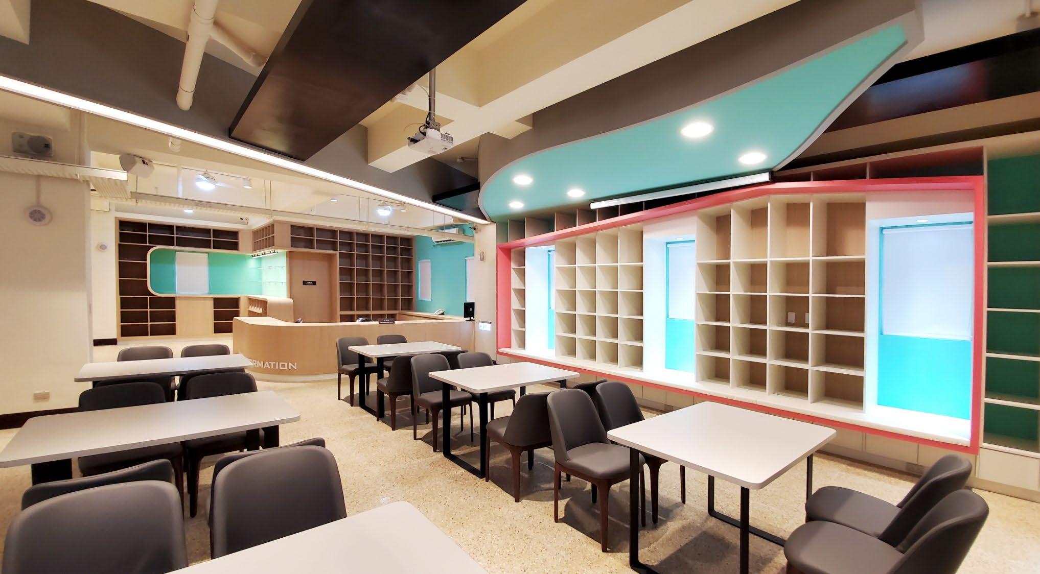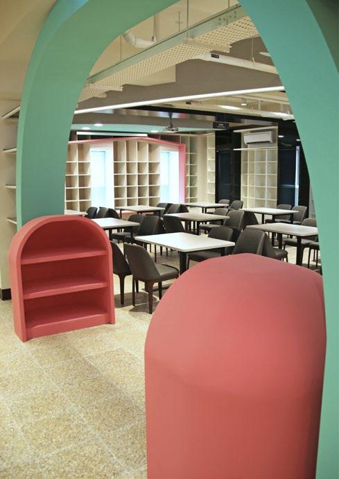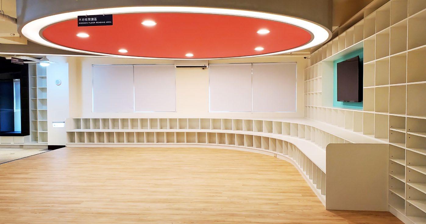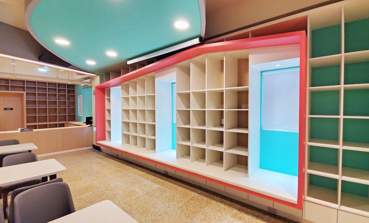 閱讀草原 :高架地板設計, 區劃獨立使用活動空間利用 音符意象搭配紅棗色調,創 造獨立天花設計,凝聚空間 獨特性。