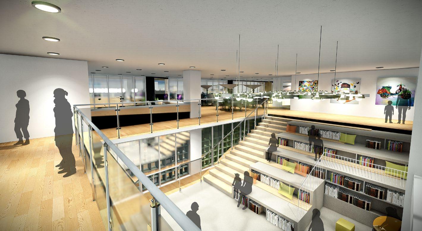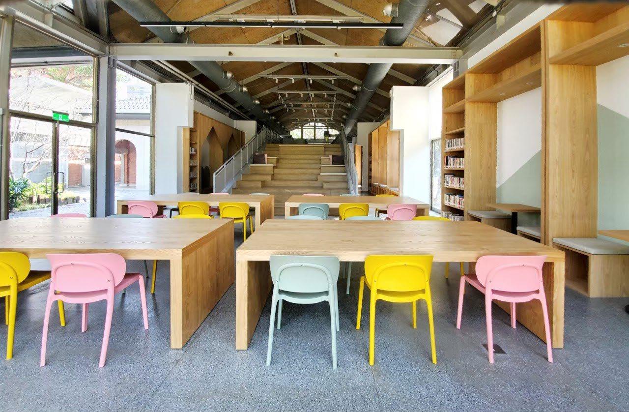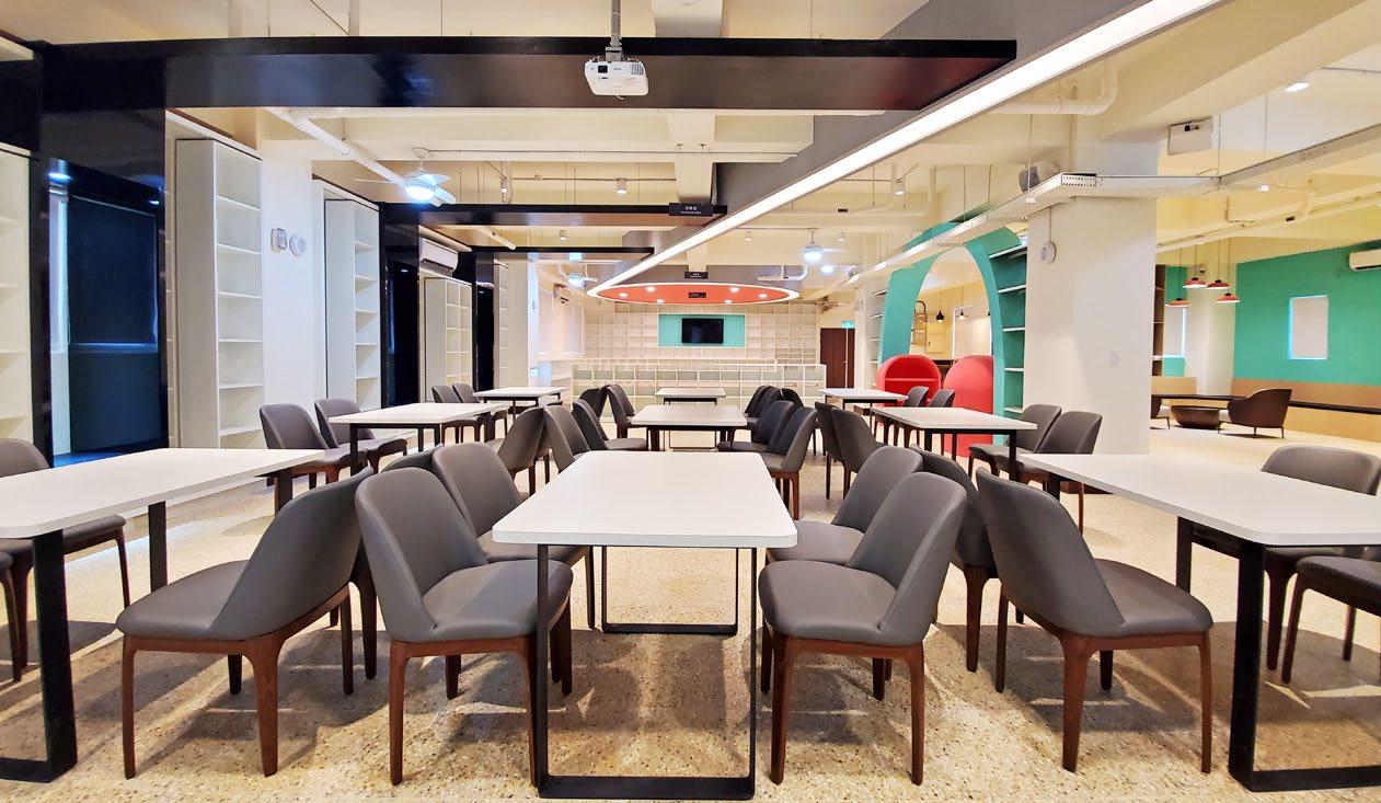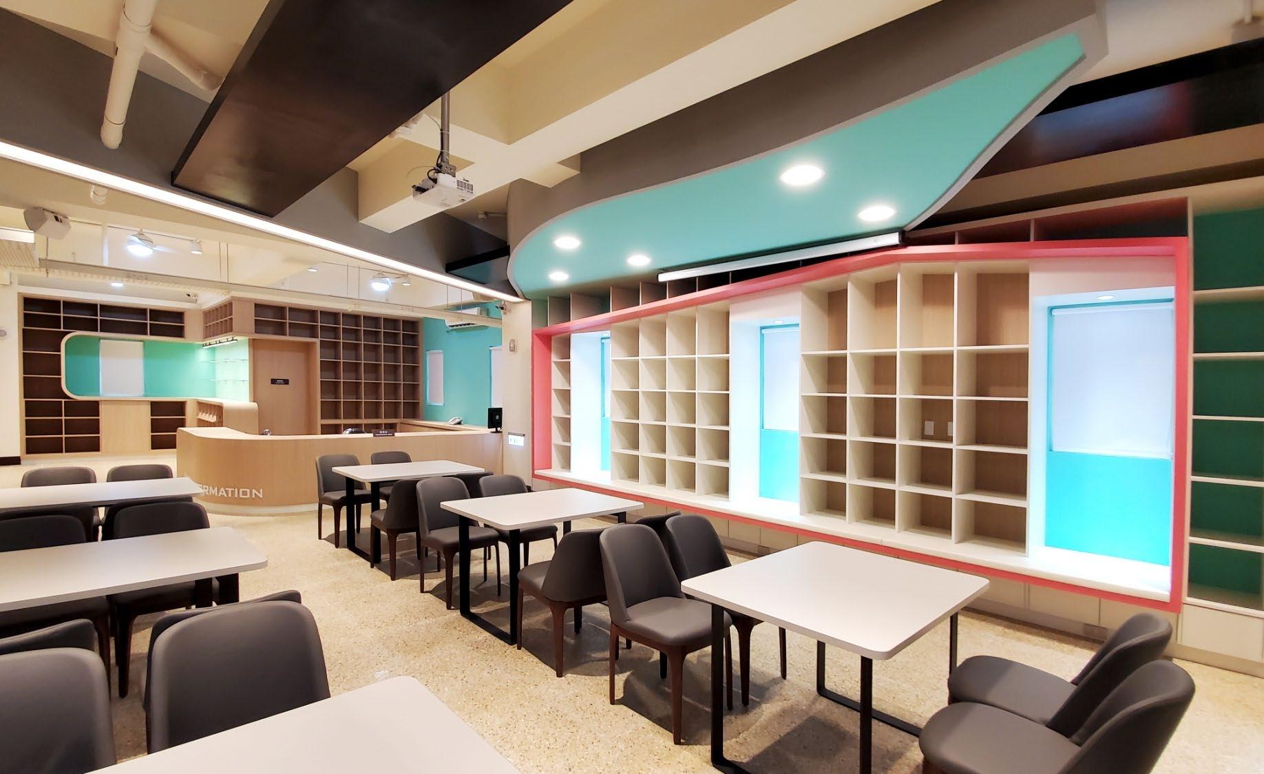 閱讀草原 :高架地板設計, 區劃獨立使用活動空間利用 音符意象搭配紅棗色調,創 造獨立天花設計,凝聚空間 獨特性。